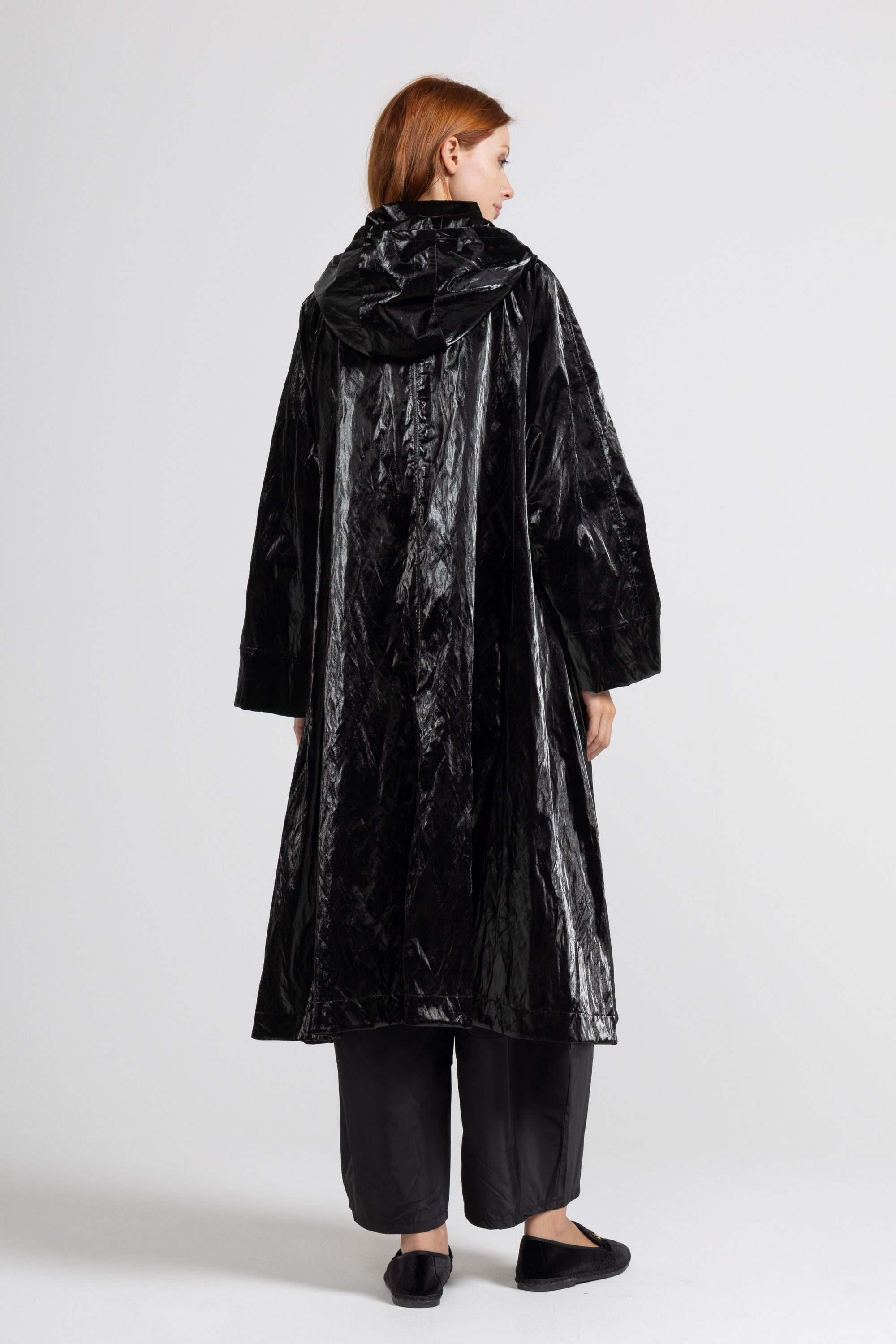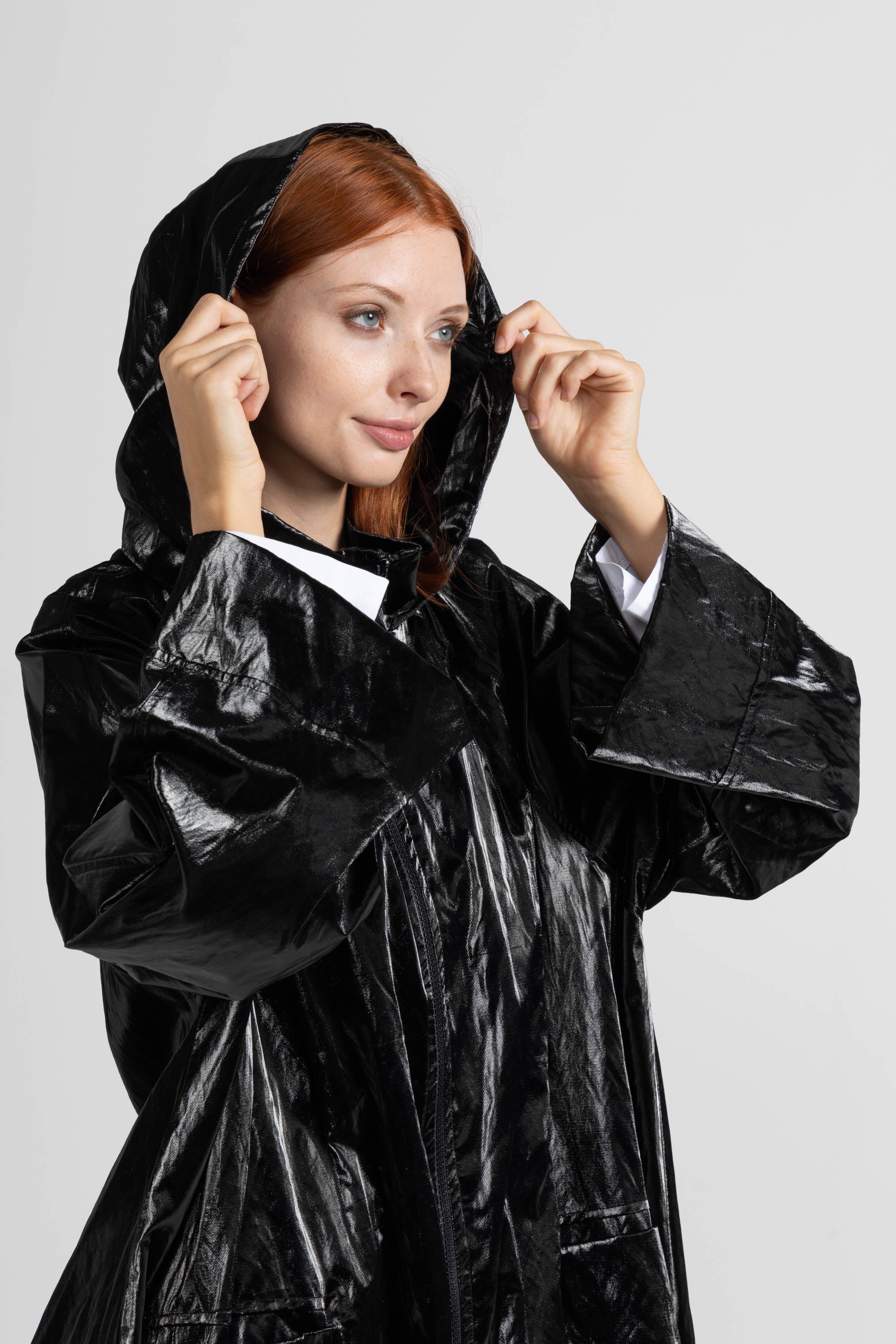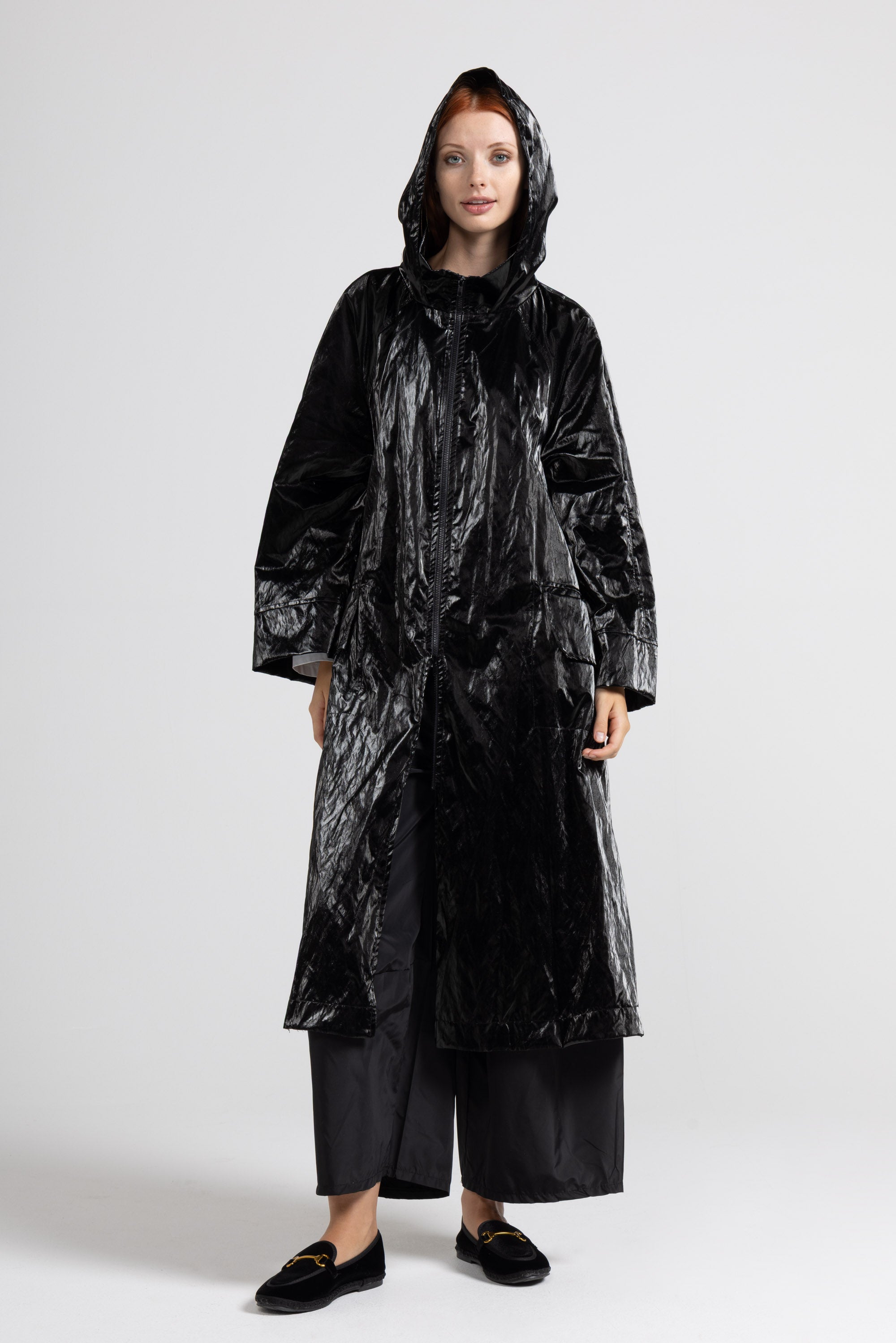 SPOLVERINO LUNGO IN TESSUTO PAMUK SPALMATO, MANICA LUNGA CON POLSO RIBATTUTO ALTO,