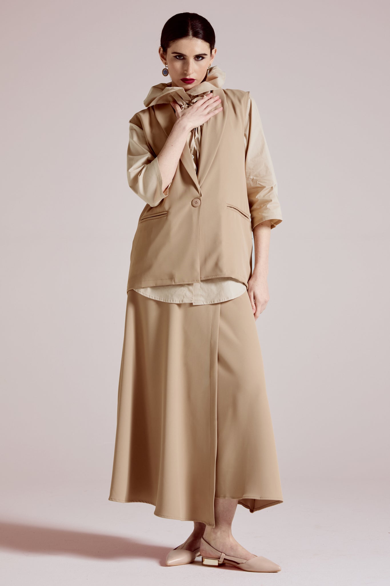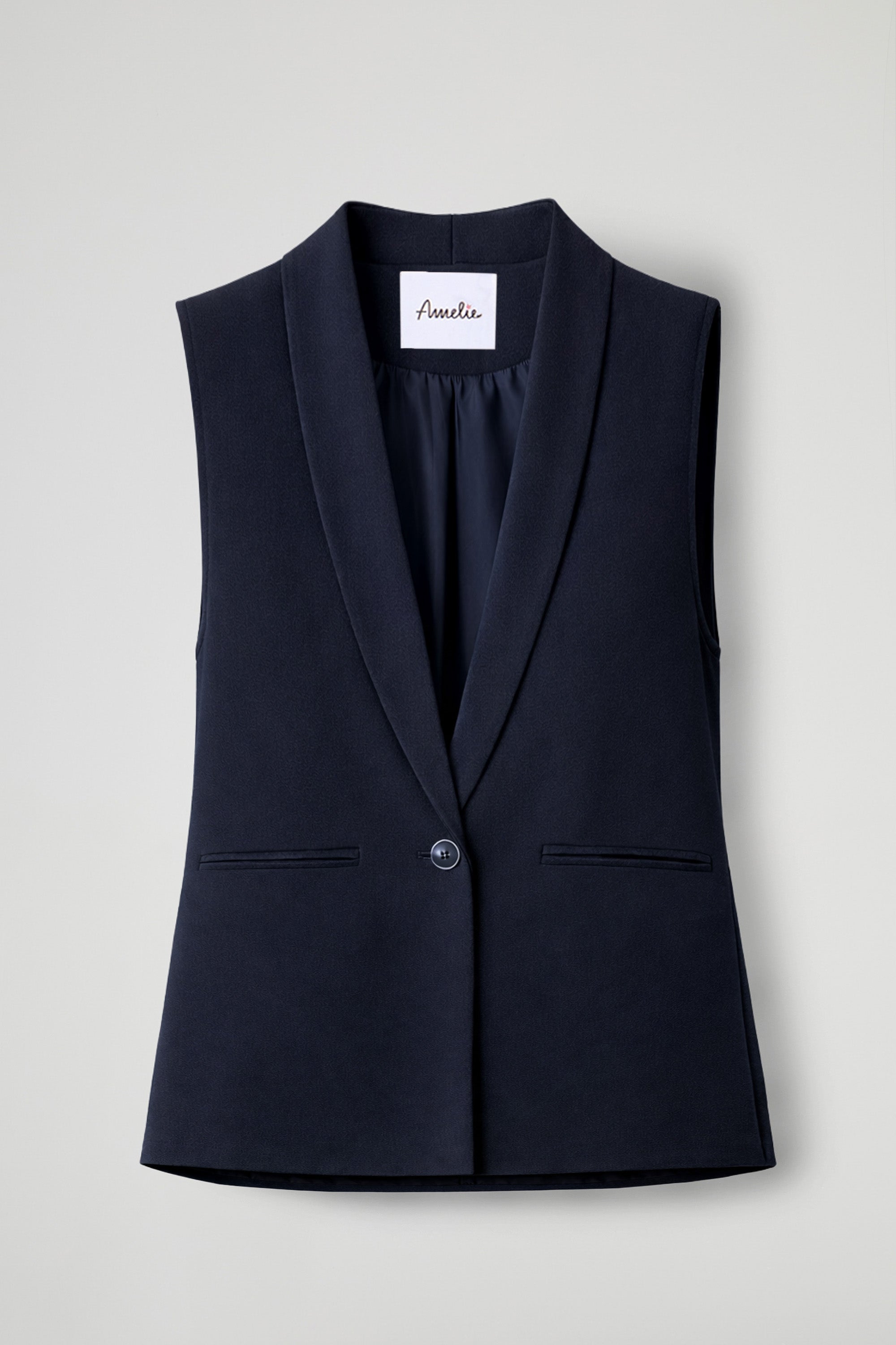 Gilet sartoriale realizzato in tessuto fluido; Un capo iconico dal fascino contemporaneo caratterizzato da una linea pulita e femminile, perfetto da indossare su camicie, bluse o maglie leggere, è il capo ideale per creare outfit eleganti, minimal e di tendenza sia per il giorno che per la sera.