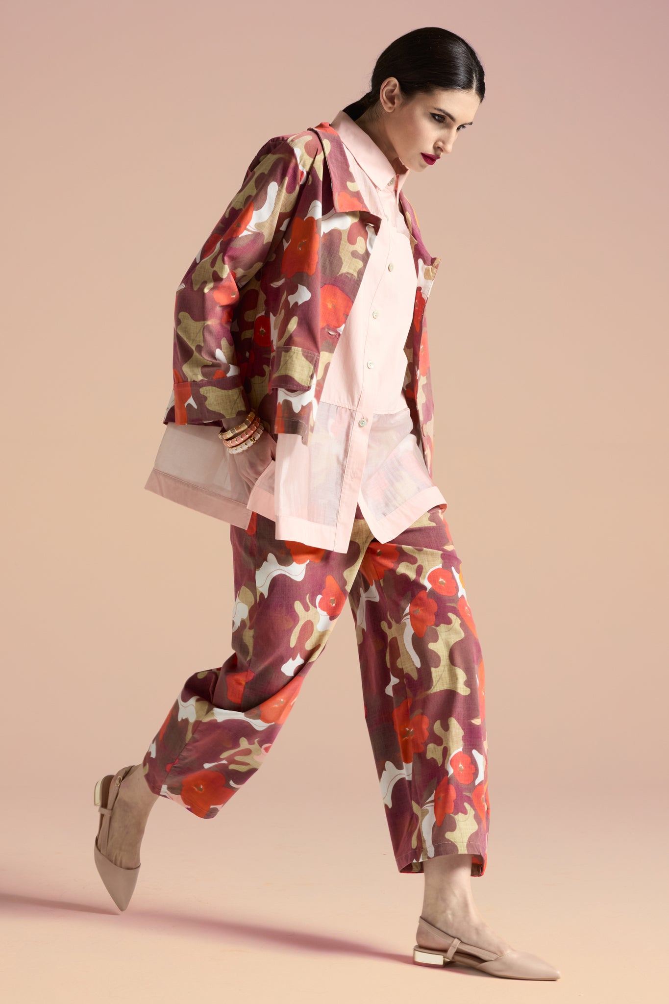 Giacca leggera dal taglio corto e leggermente boxy, caratterizzata da una stampa camouflage rivisitata con maxi fiori; Il collo a rever e la chiusura frontale con bottoni le danno un’aria sartoriale, mentre le tasche applicate con patta aggiungono un tocco utility chic.