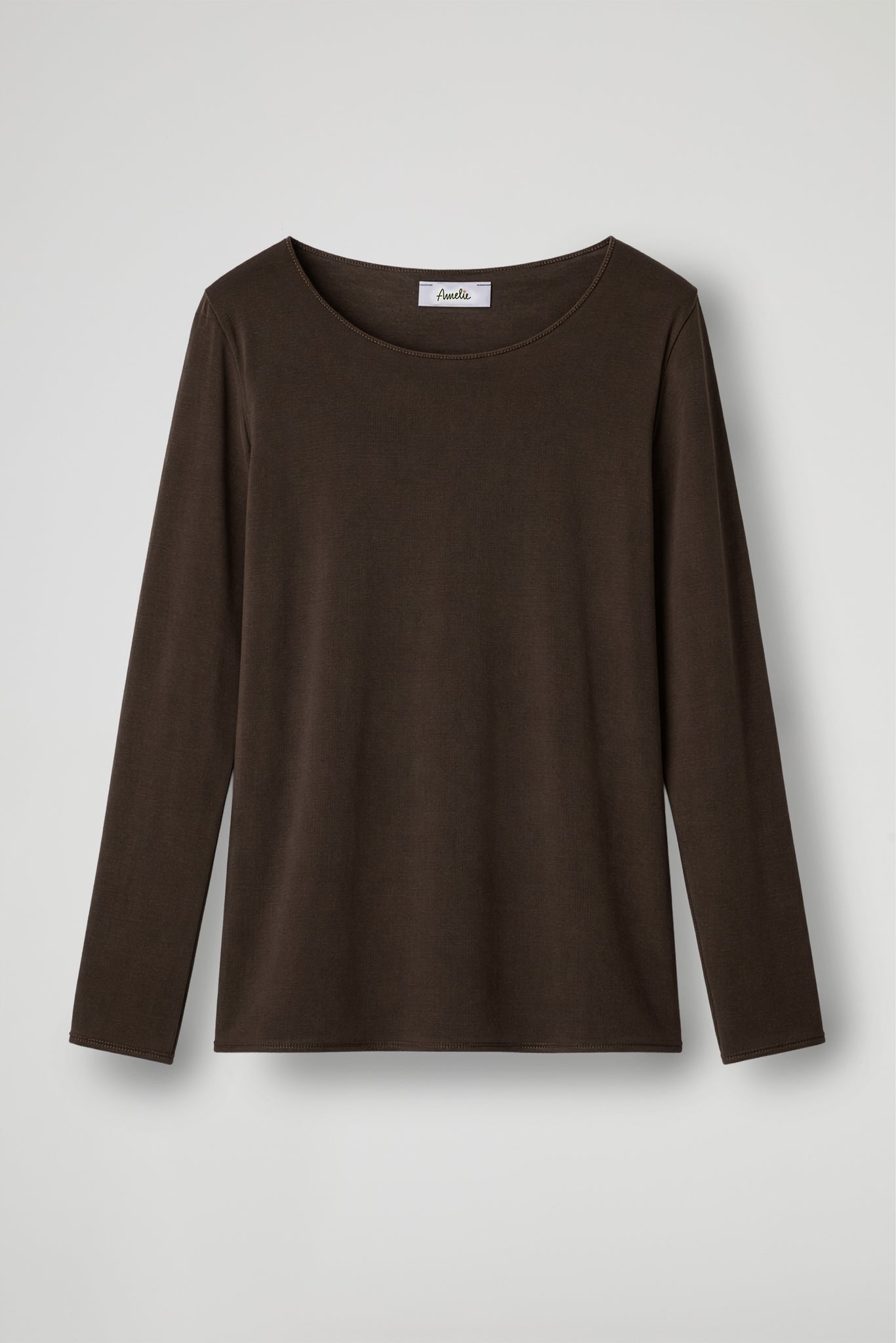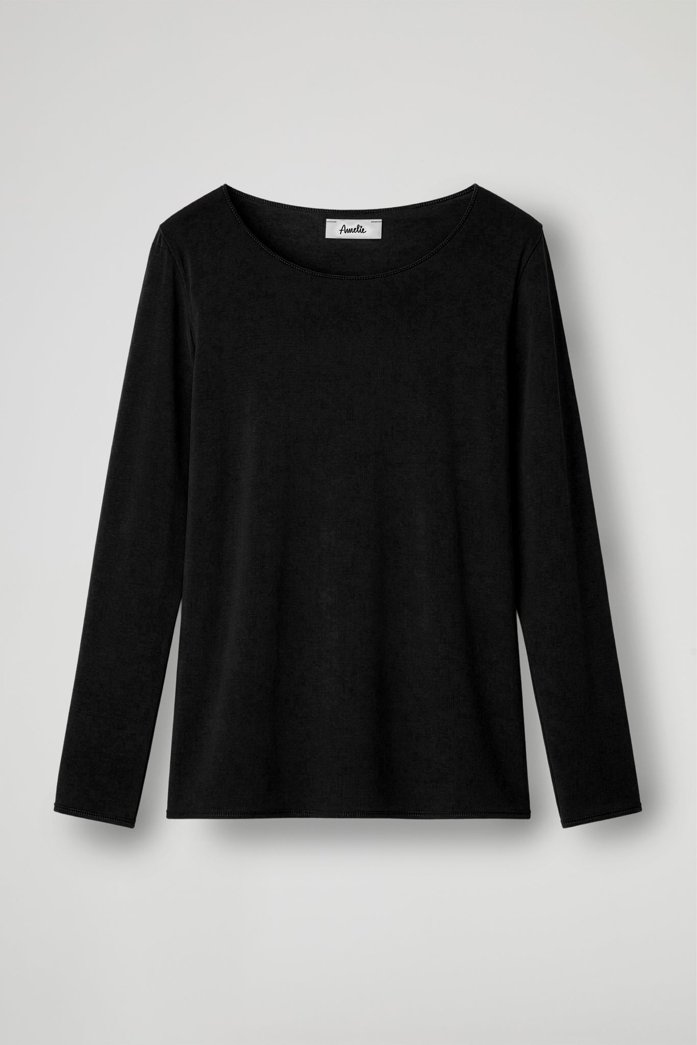 Maglia a maniche lunghe in morbida viscosa, collo ampio e arrotondato. linea morbida