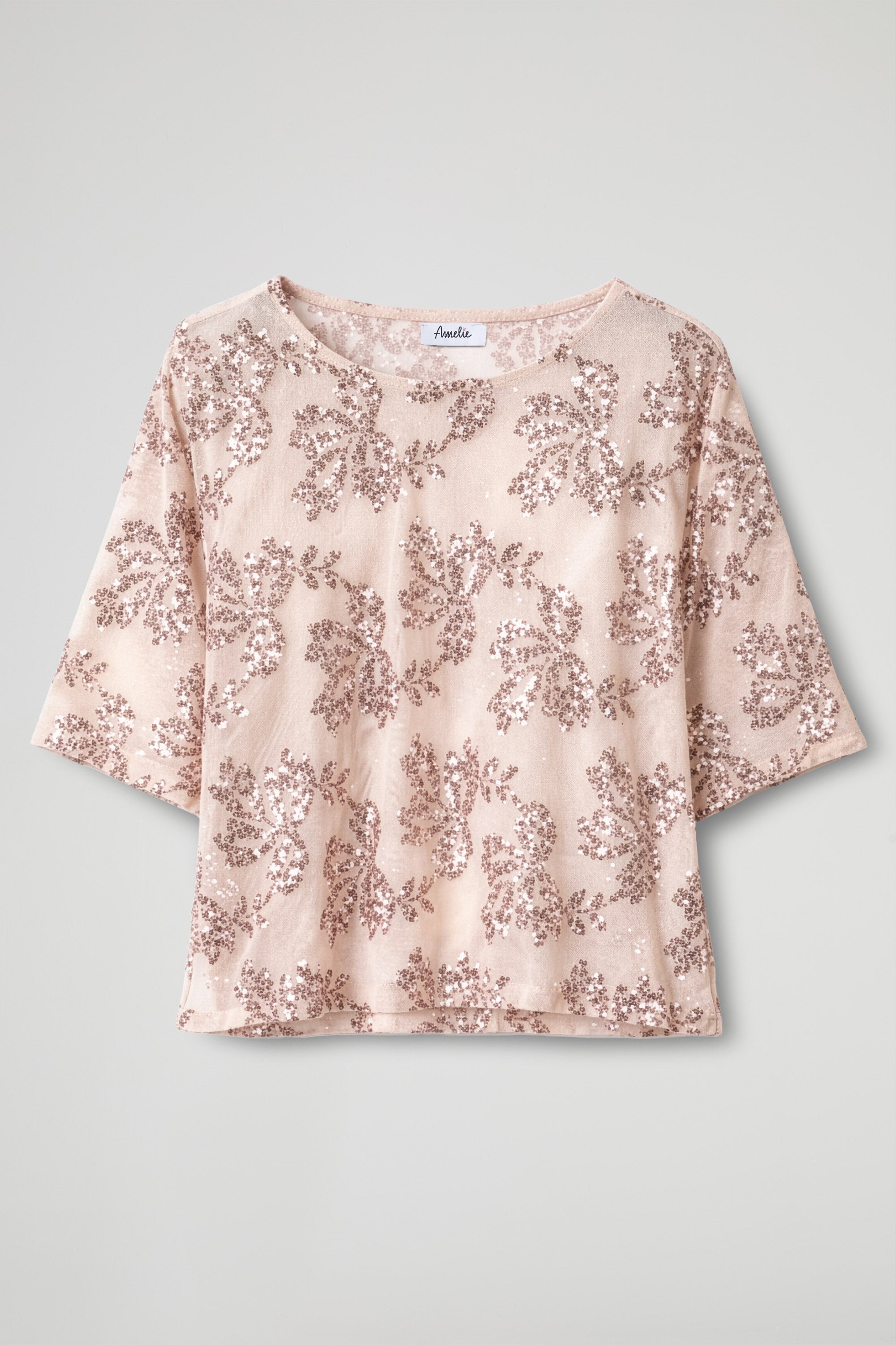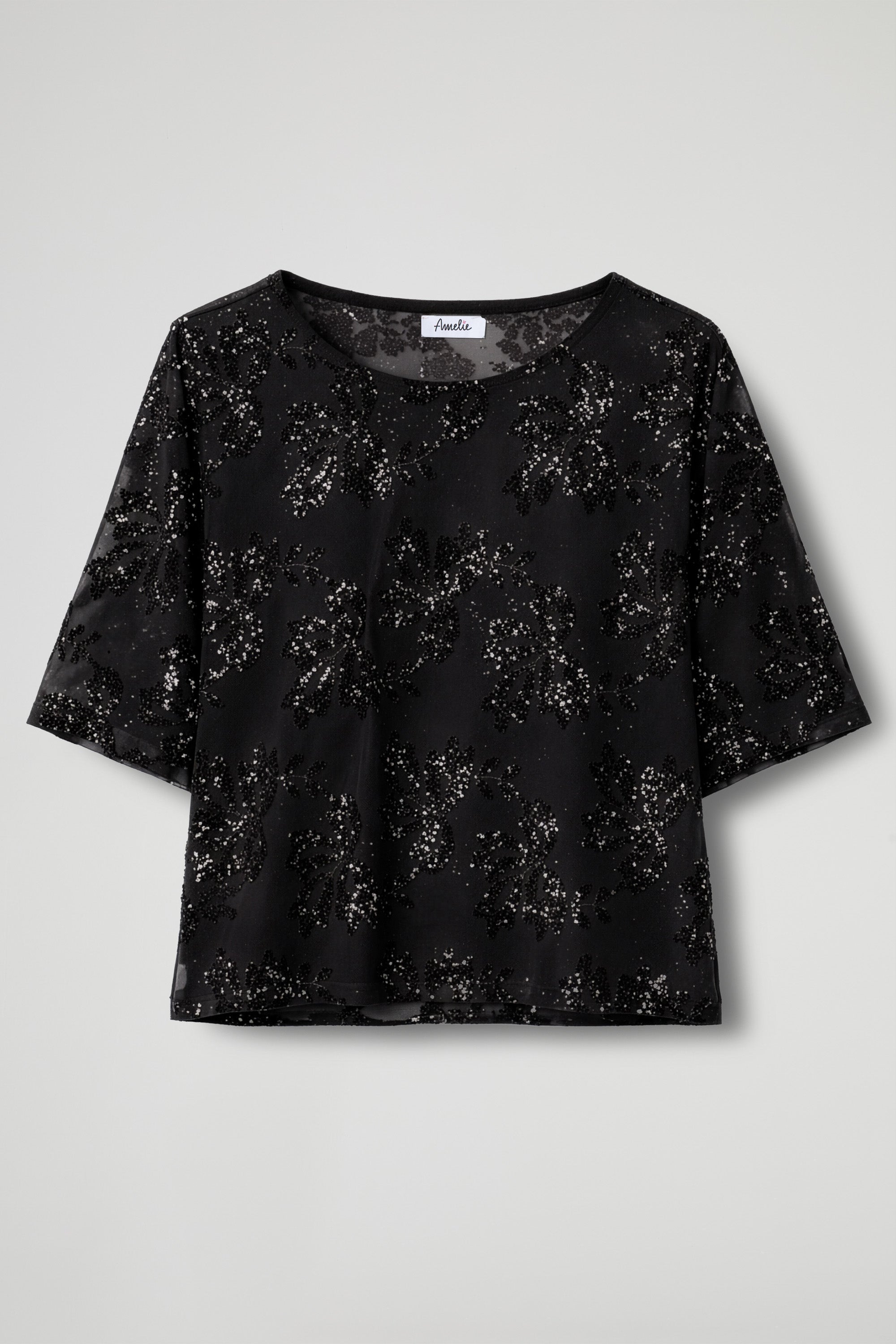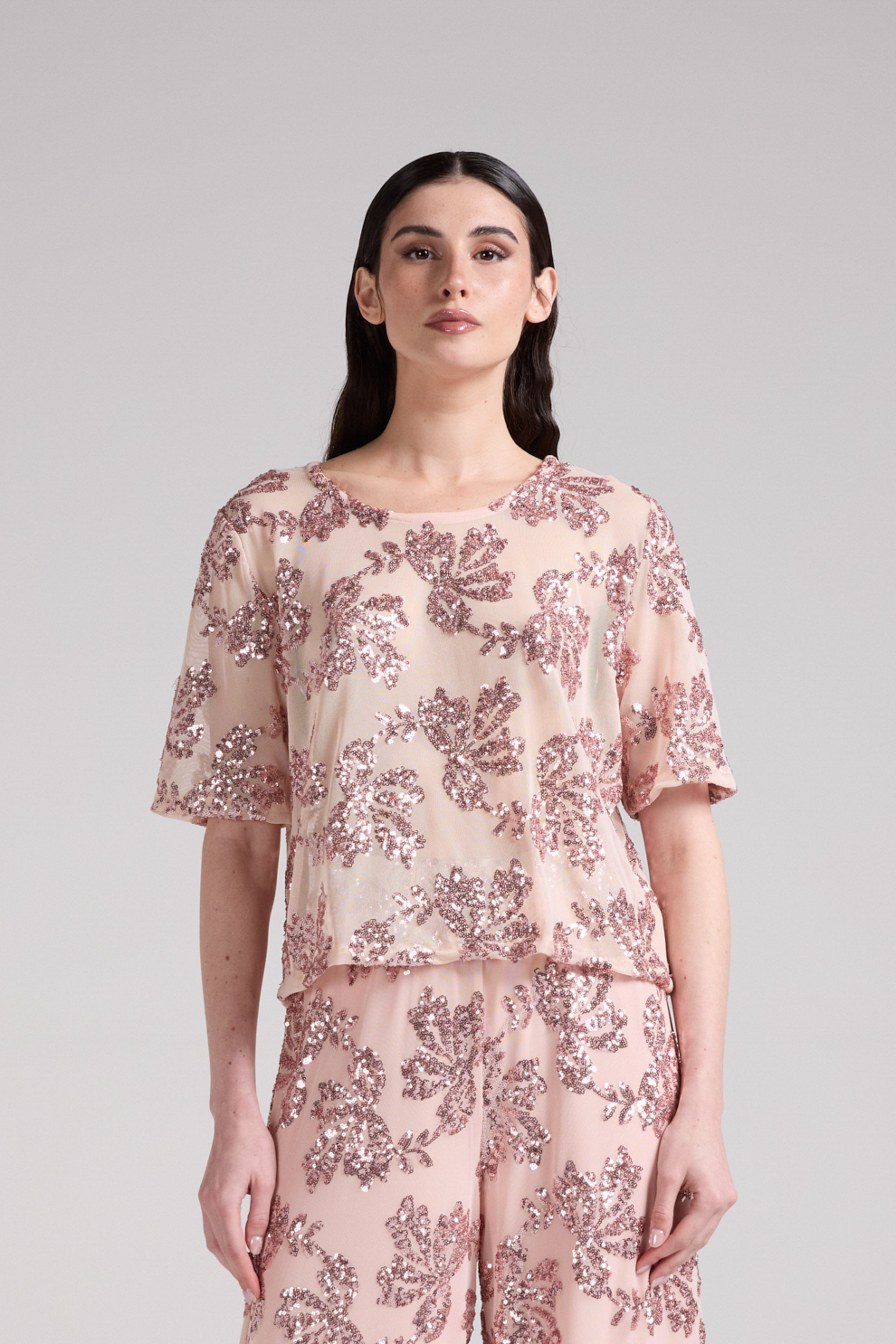 TOP TAGLIO BOXY RICAMO IN PAILLETTES