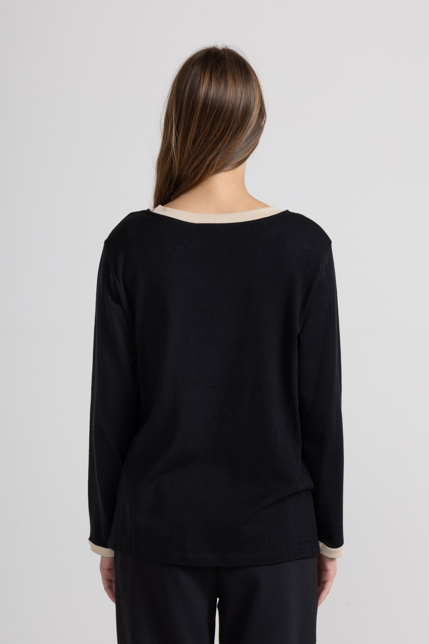 VISCOSE KNITTED TOP WITH CONTRAST COLLAR