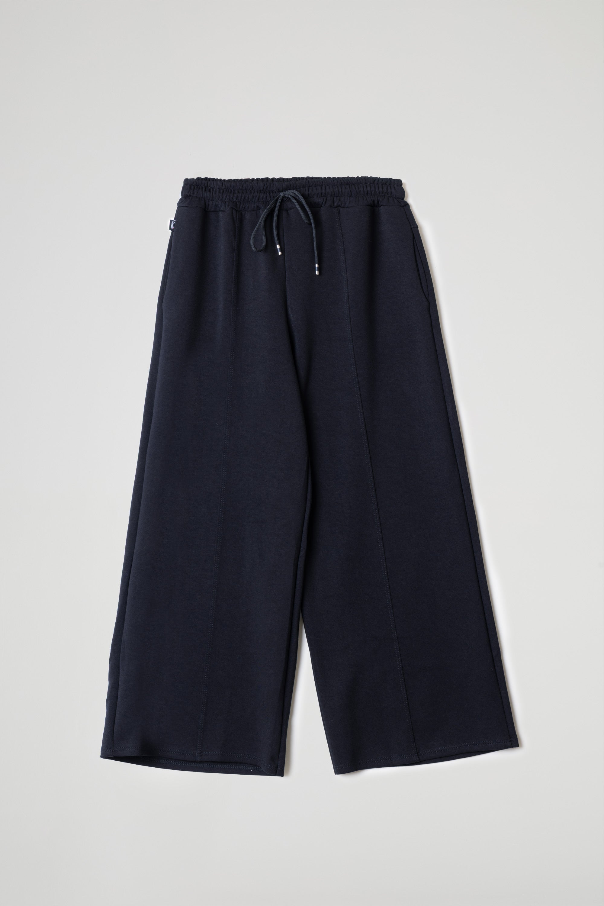 PALAZZO TROUSERS IN FLUENT VISCOSE FABRIC, TOPSTITCHING ON THE LEG, ELASTIC AND ADJUSTABLE DRAWSTRING AT THE WAIST, WELT POCKETS, V-SHAPED BACK. COMFORT LINE