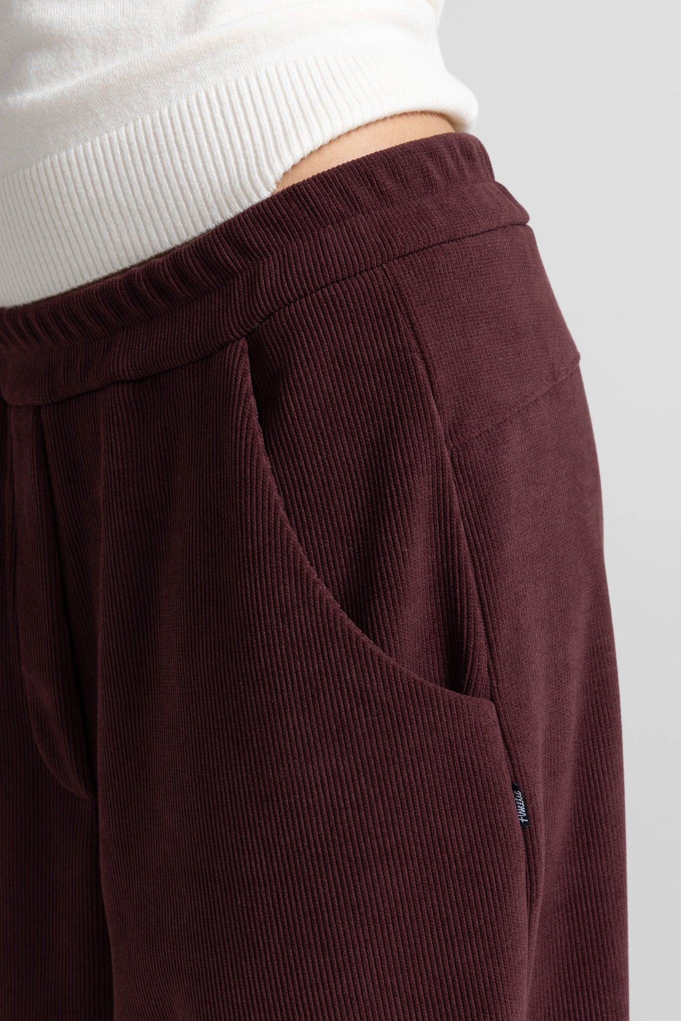 Pantalone baggy in tessuto millerighe di velluto, un materiale caldo, avvolgente e con mano morbida, che conserva elasticità e struttura. Perfetto per look rilassati e quotidiani, ma anche per outfit più ricercati grazie alla texture raffinata e al design essenziale.