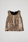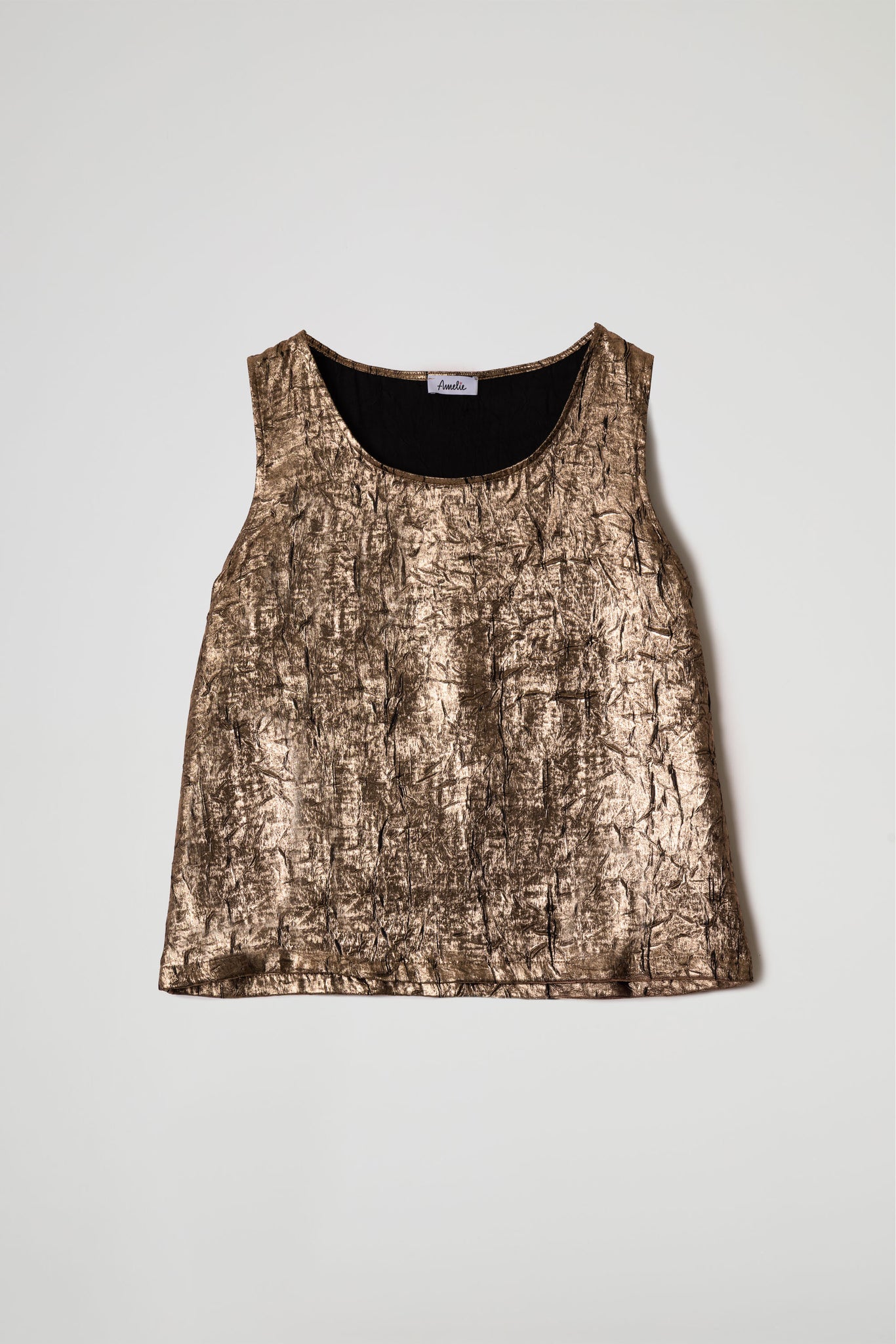 Tank top made from a lightweight coated fabric with a slightly shiny finish. The surface features an elegant creased effect that adds movement and character to the garment. The comfortable, flared fit is ideal for layering or wearing alone for a minimal, sophisticated look.