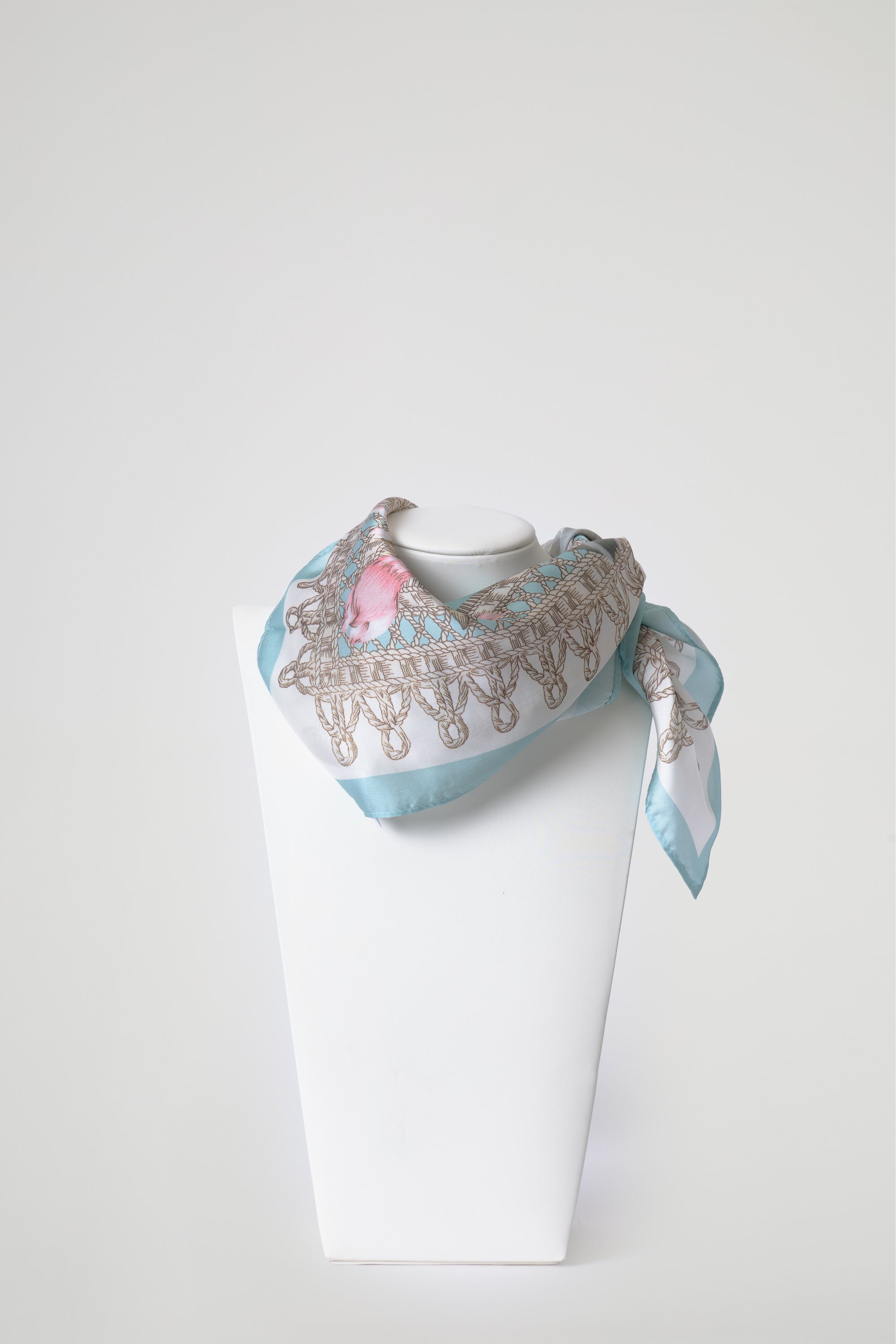 Foulard in morbida seta, impreziosito da raffinate stampe. Leggero, luminoso e piacevole al tatto, dona un tocco di eleganza e colore ad ogni look.