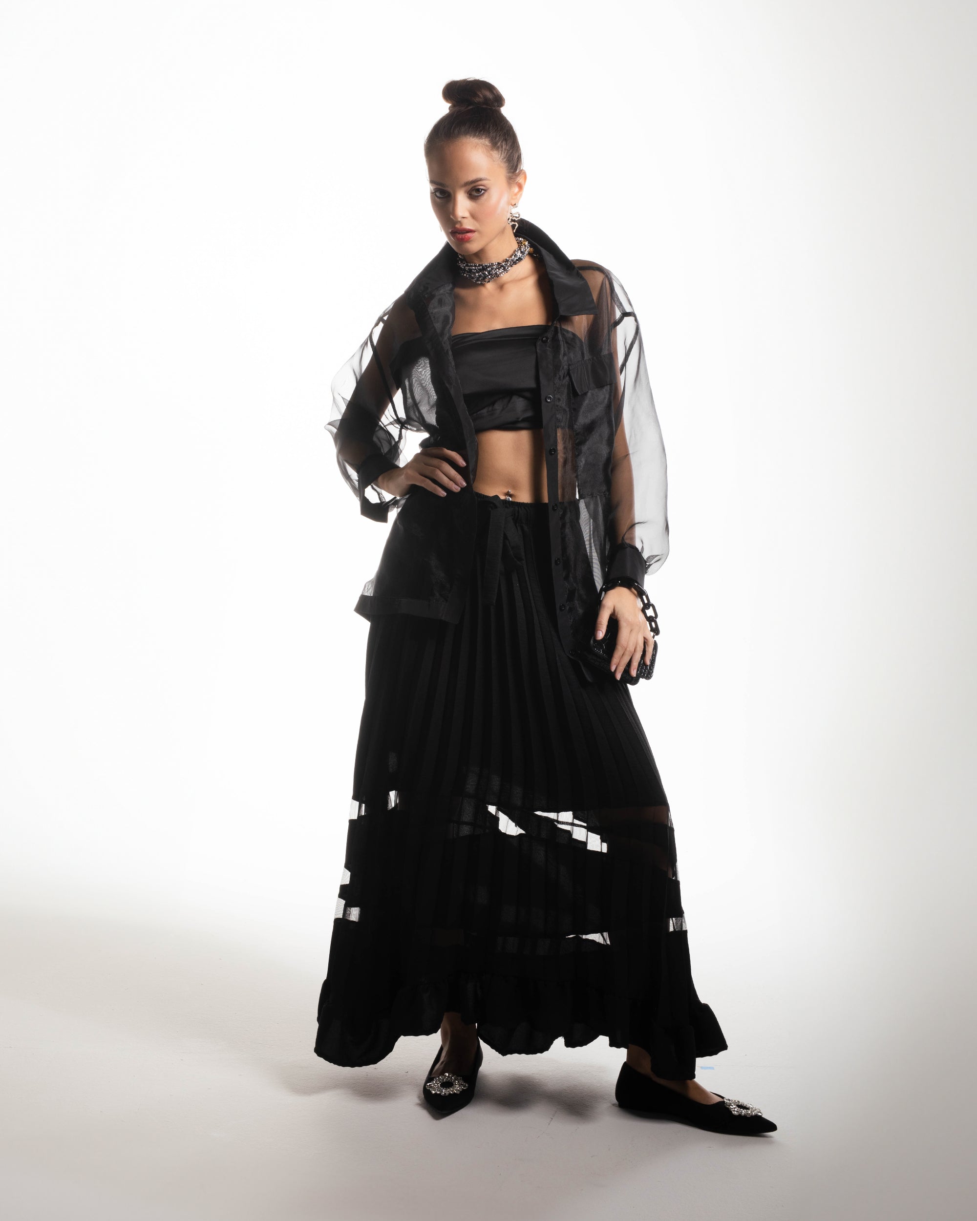 PLEATED SKIRT WITH TRANSPARENT BAND AT THE BOTTOM