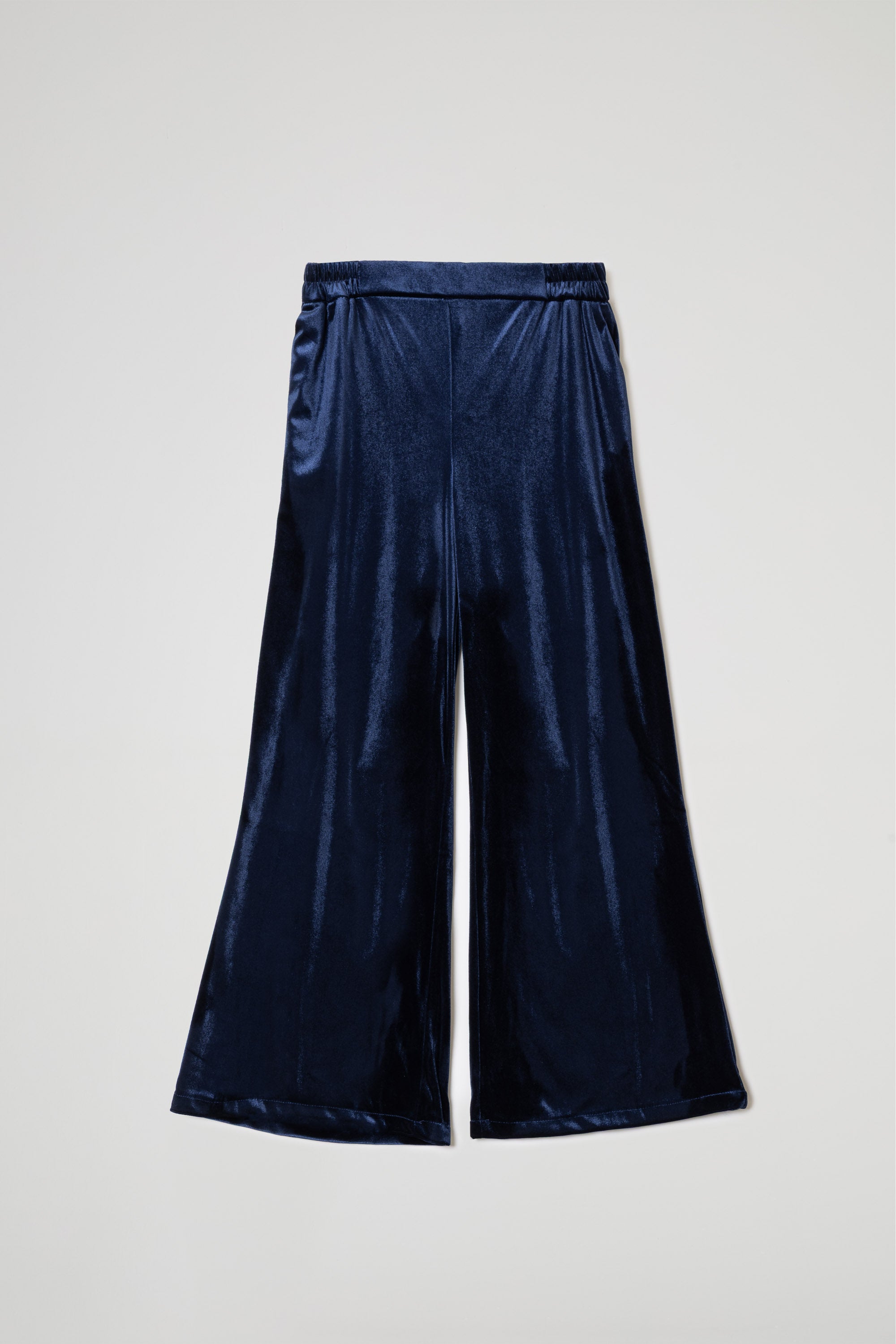 Palazzo trousers in soft and pleasant-to-the-touch stretch velvet, elastic waist for optimal comfort, slant pockets. Soft lining.