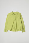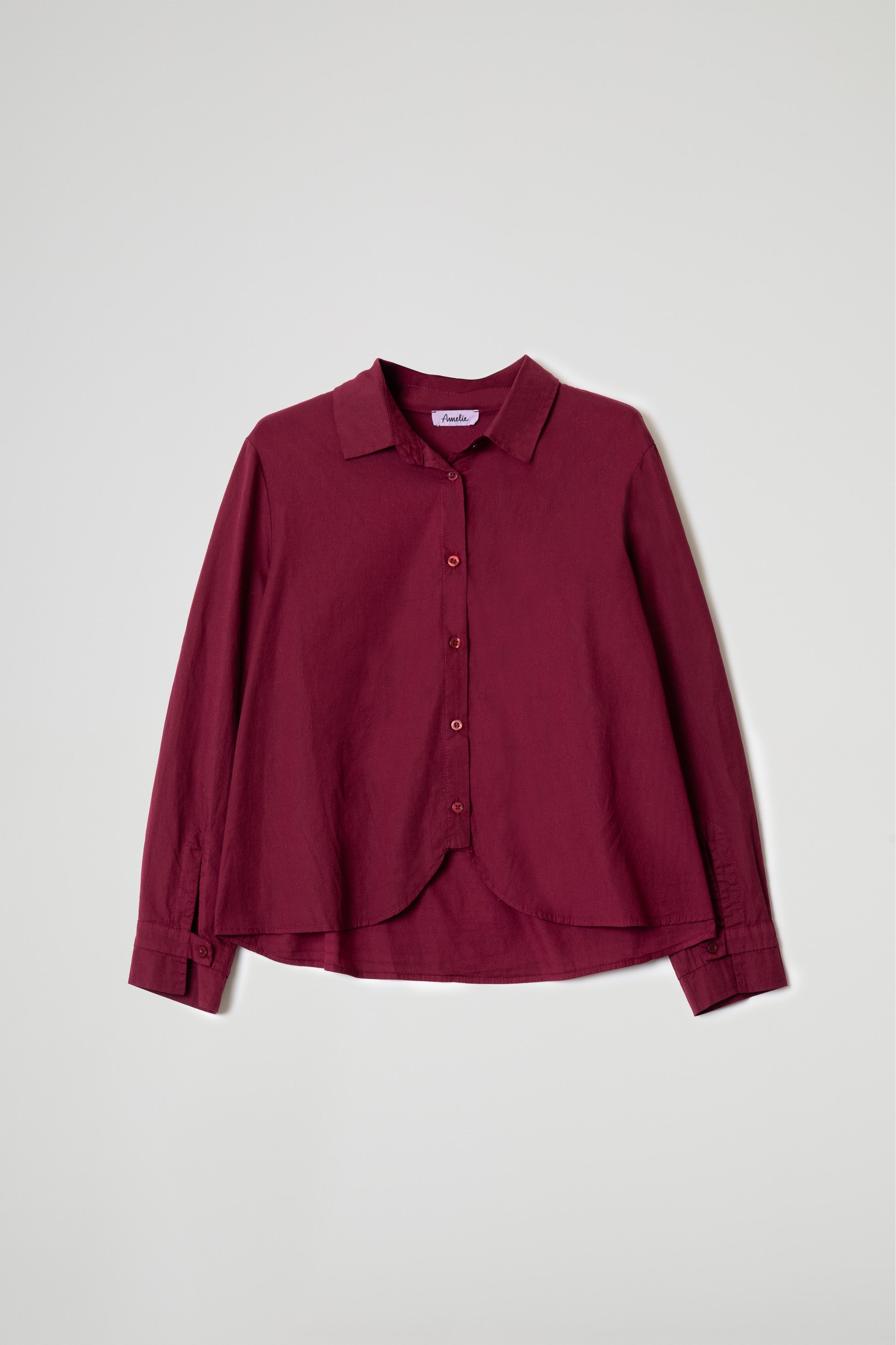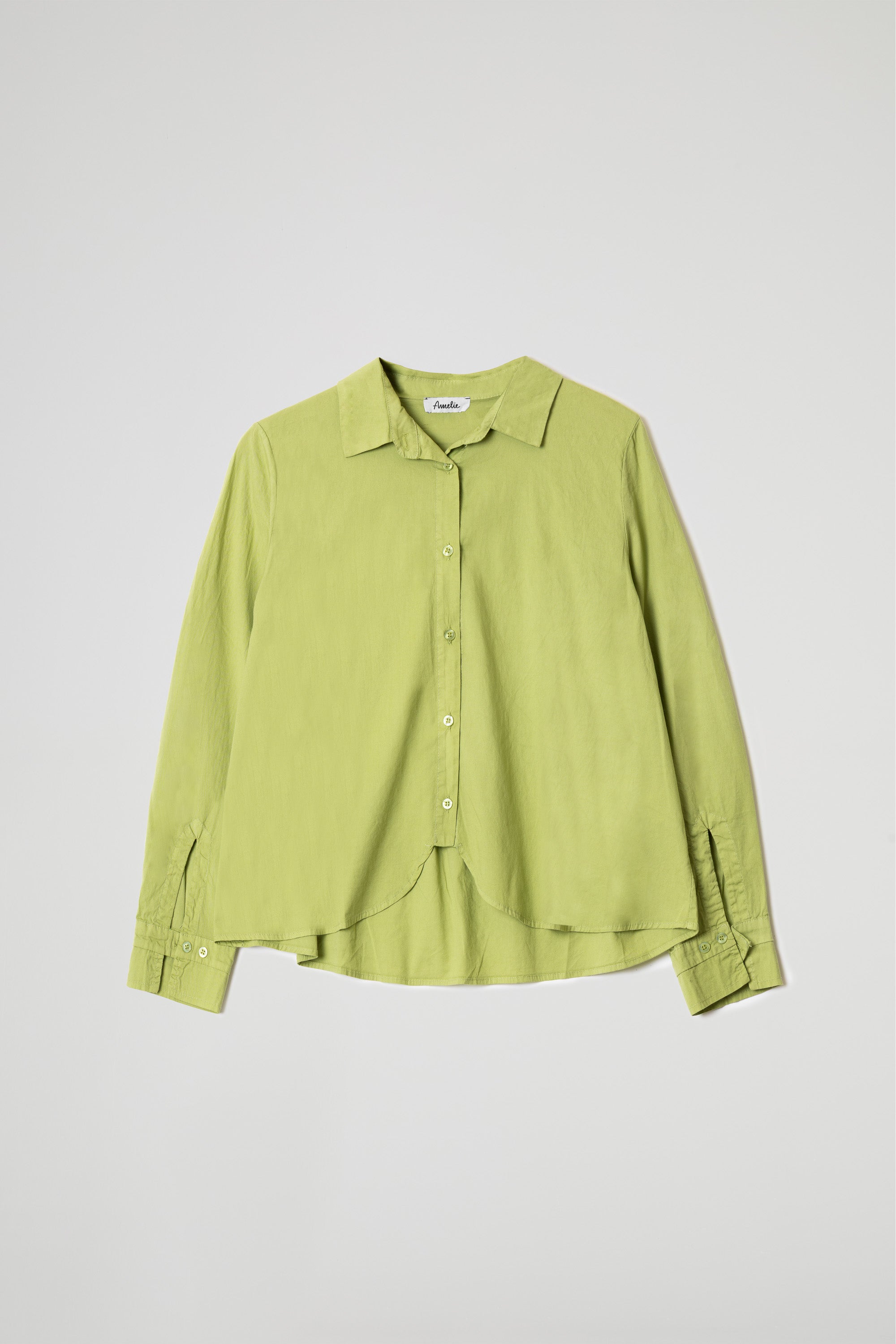 Boxy shirt in soft cotton, spread collar, button closure, petal hem, long sleeves with high folded cuffs and two buttons to adjust the closure, yoke with pleat at the back. Boxy fit.