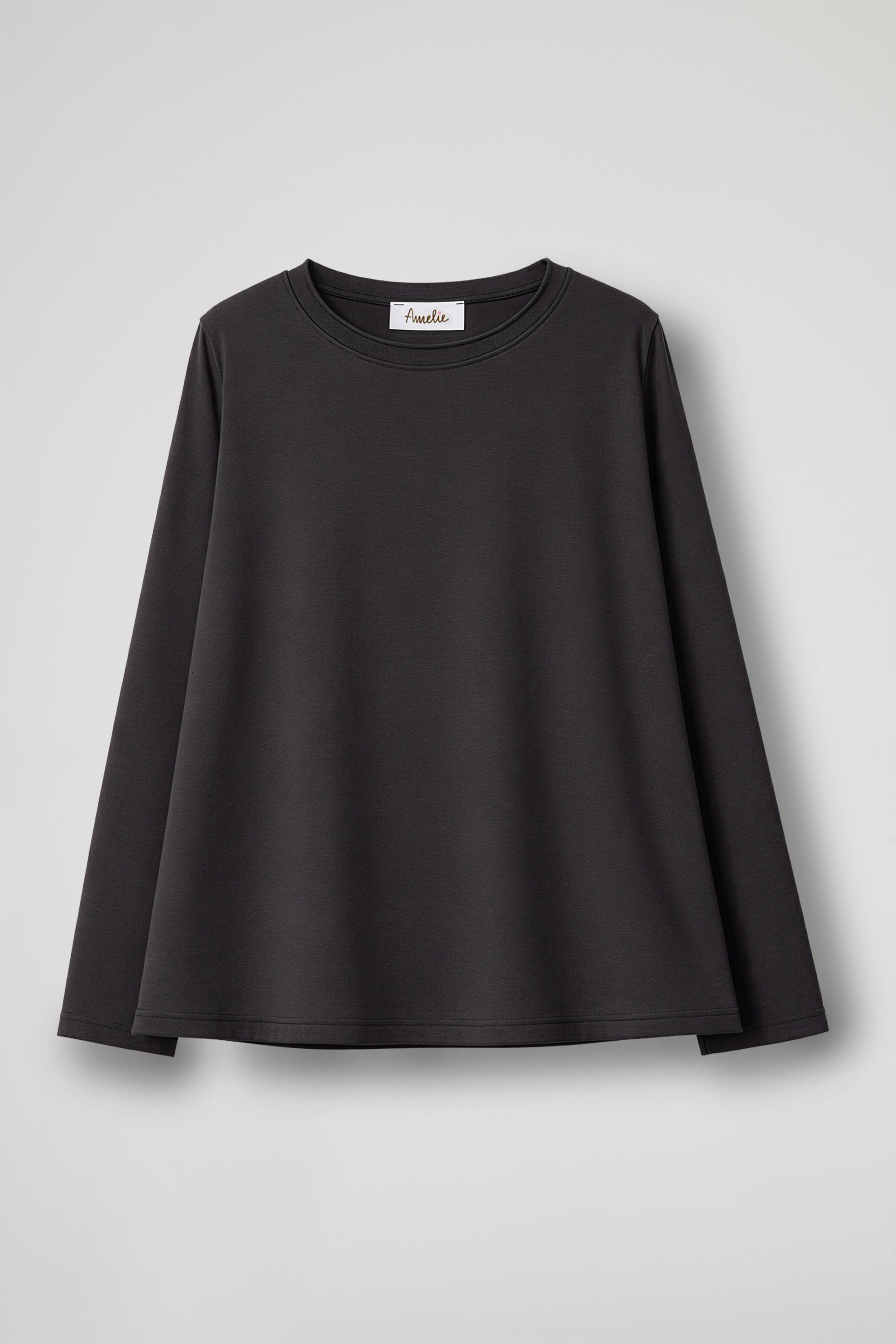 A long-sleeved sweater with a minimal, contemporary appeal, a versatile piece made from soft cotton fabric that hugs the figure with a comfortable fit that flatters without constricting; the essential design is enhanced by the finished round neckline and soft lines that make it extremely versatile.