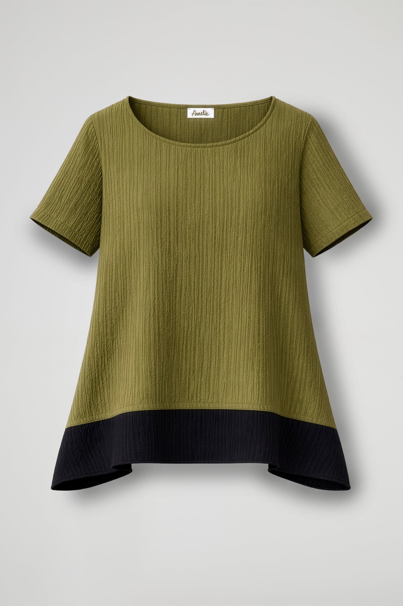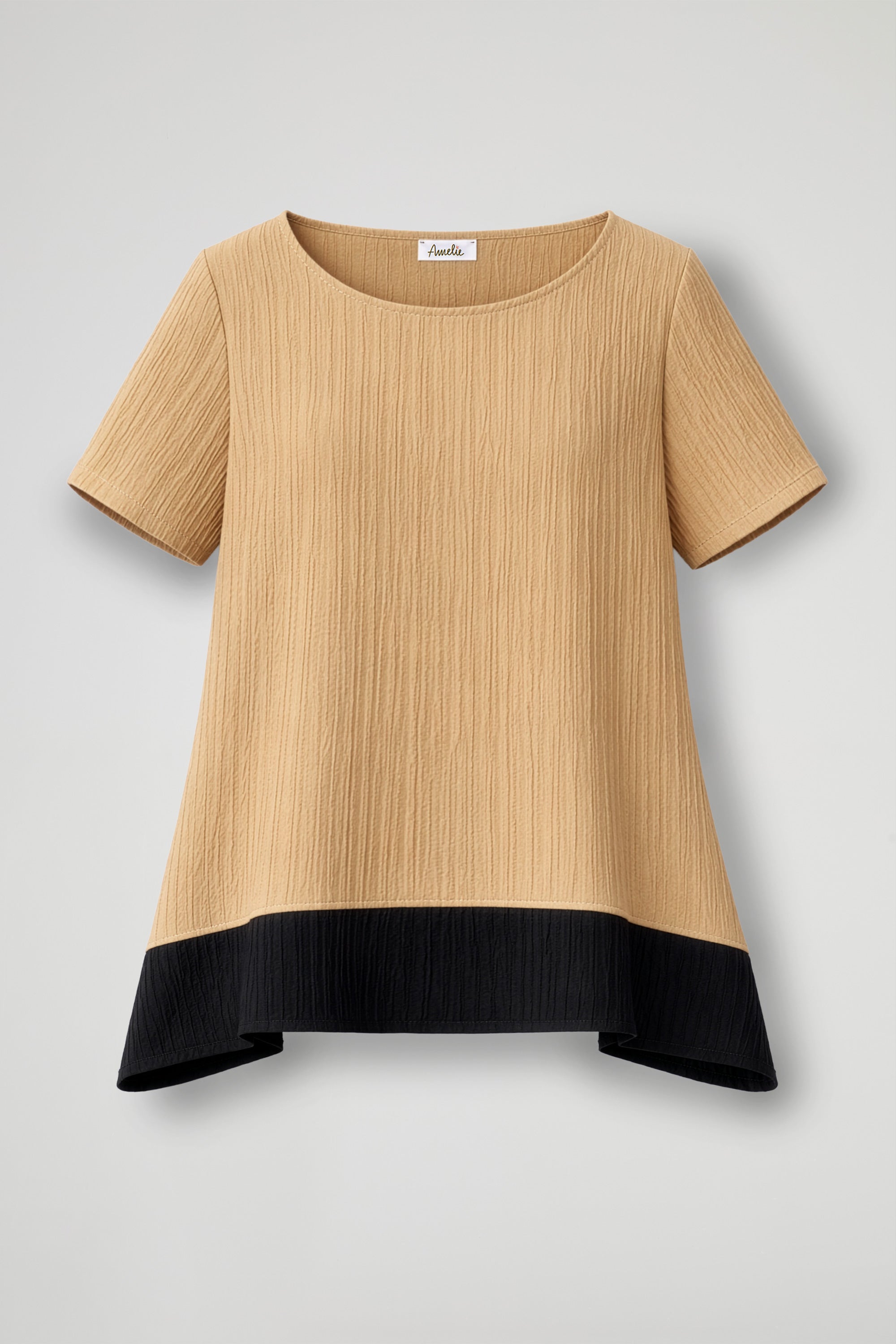 SHORT SLEEVE TOP WITH CONTRAST BAND AT THE HEM