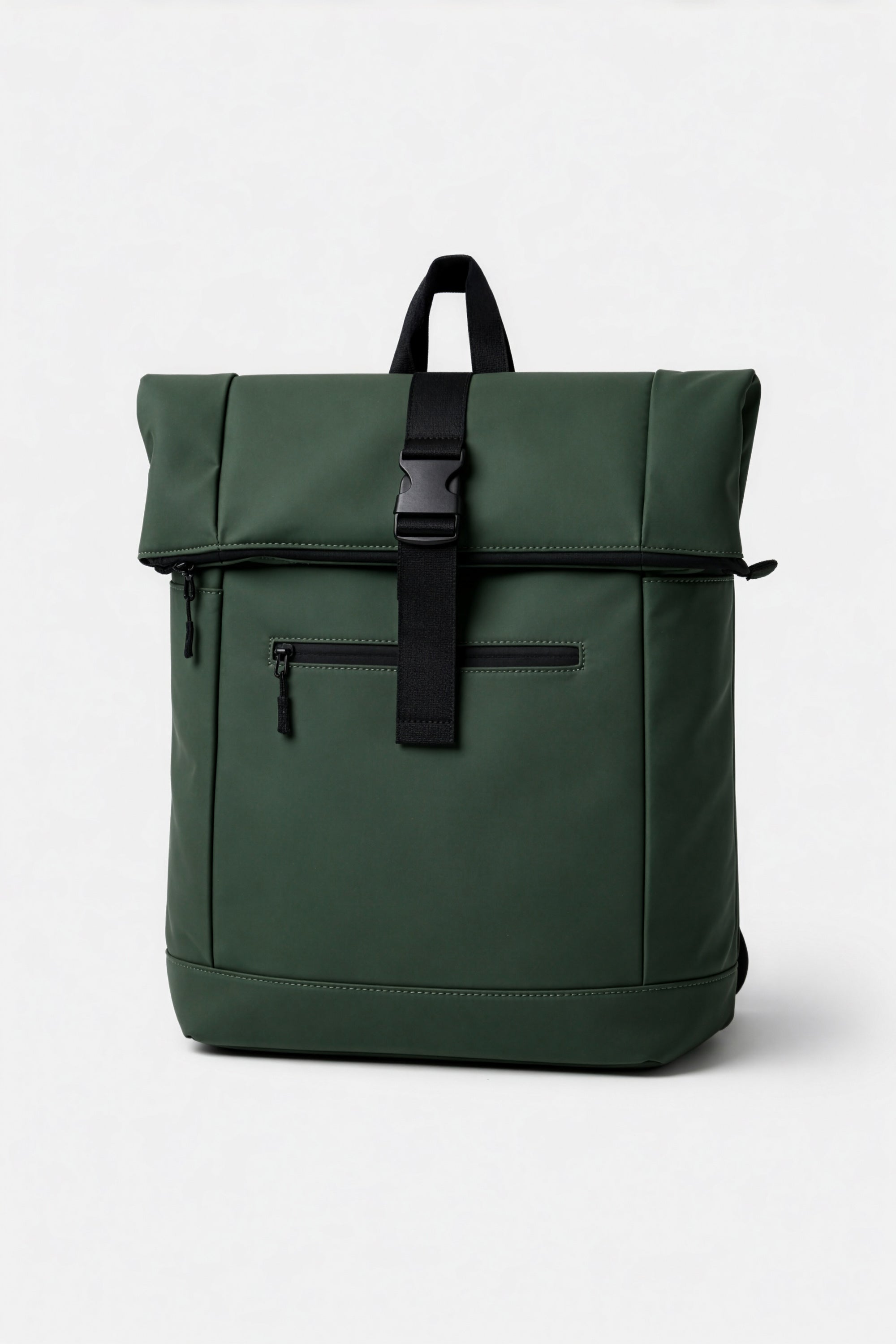 La chiusura superiore con patta ampia e cinturino con fibbia garantisce sicurezza e un tocco modern-utility, mentre le linee geometriche e la costruzione compatta mantengono lo zaino ordinato e sempre in forma;  tasca con zip frontale.