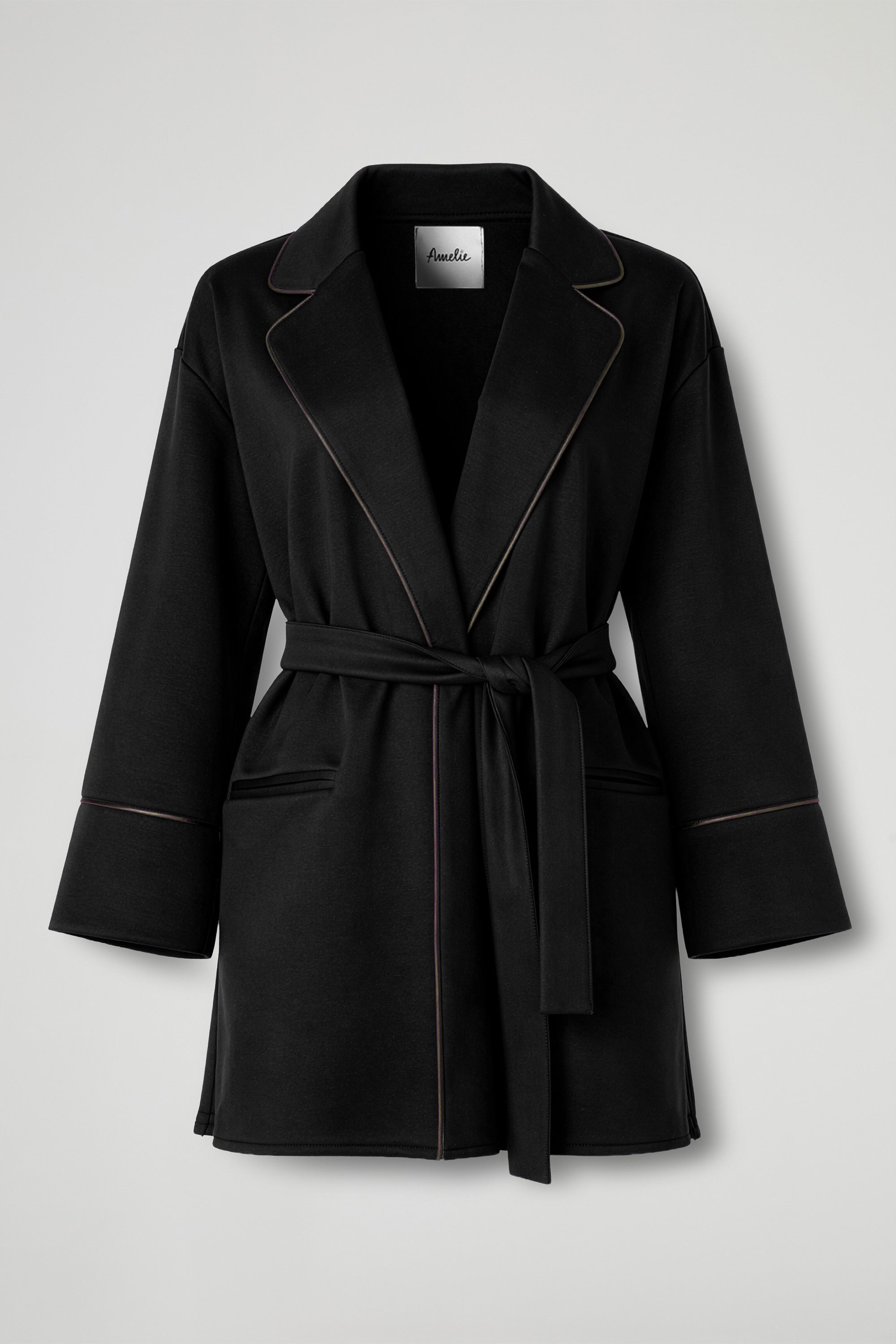 Giacca dal taglio contemporaneo, perfetta per dare subito carattere anche ai look più semplici. La linea è morbida e leggermente over, con rever ampio e un finish super curato grazie alle profilature a contrasto che definiscono i bordi e le maniche. Da indossare aperta oppure da stringere in vita con la fusciacca coordinata per valorizzare la silhouette.