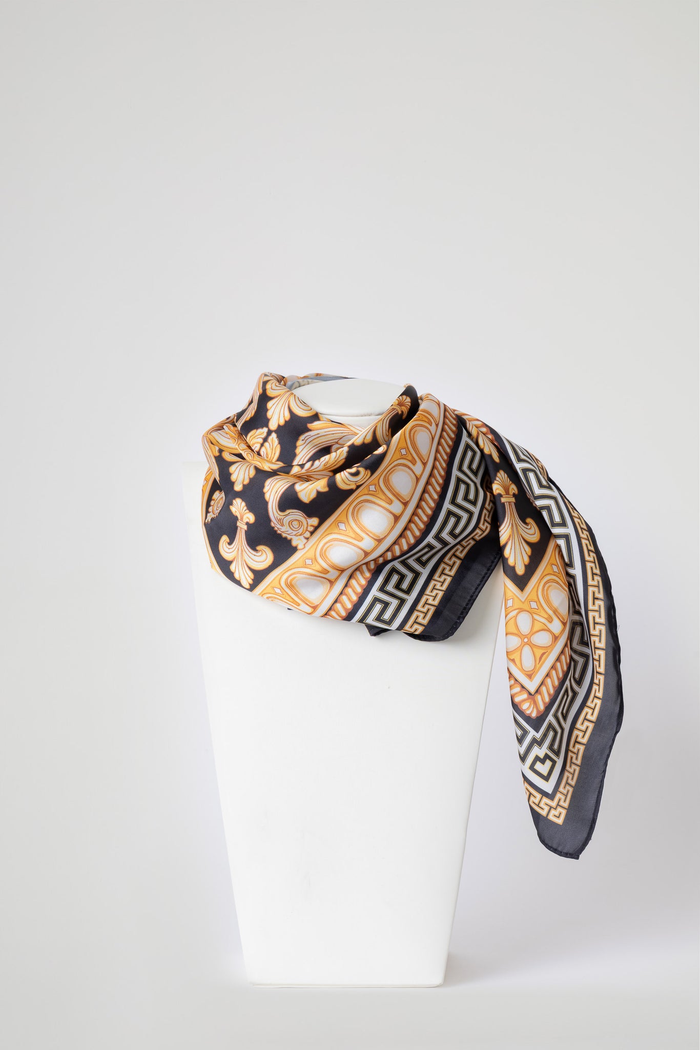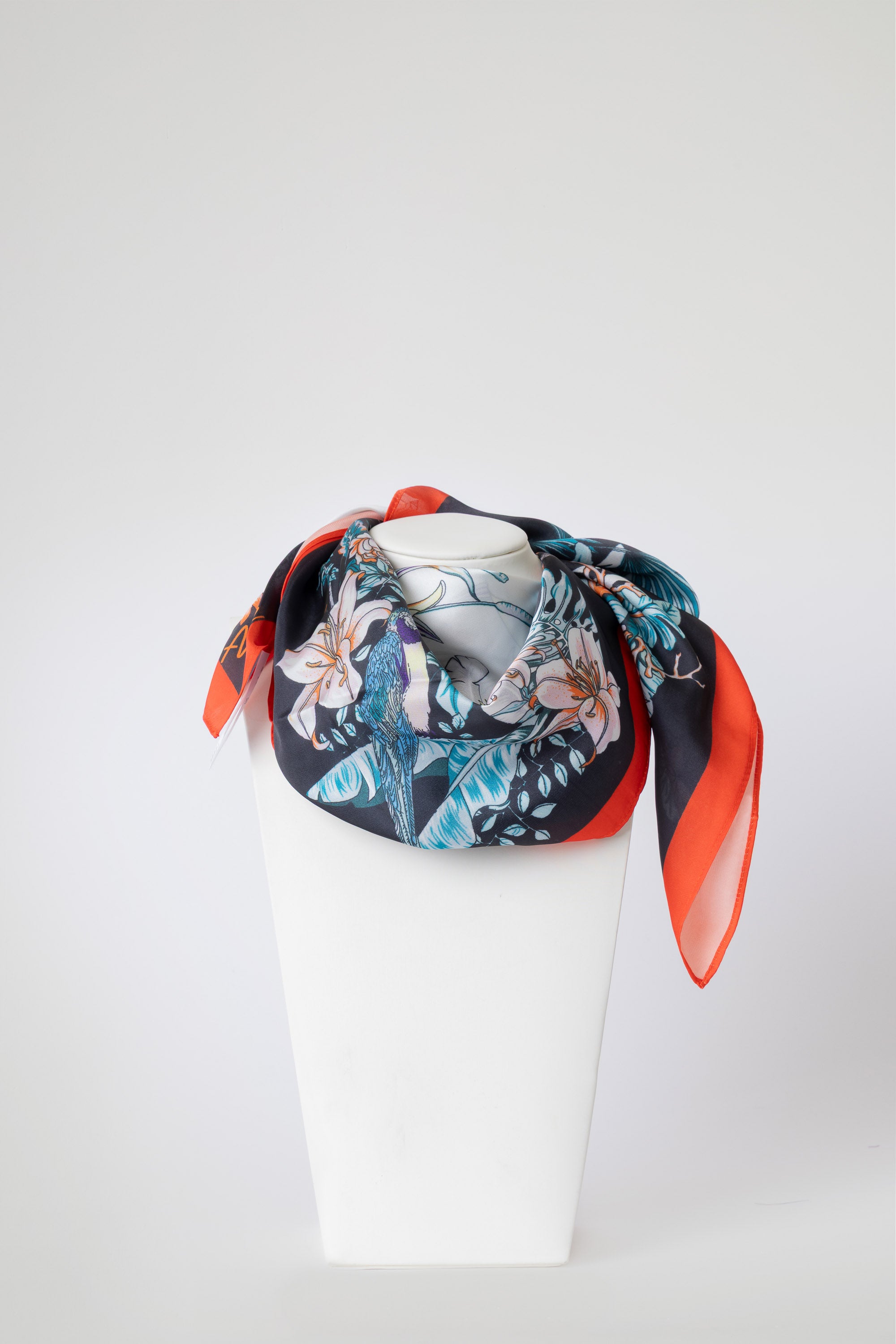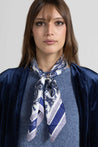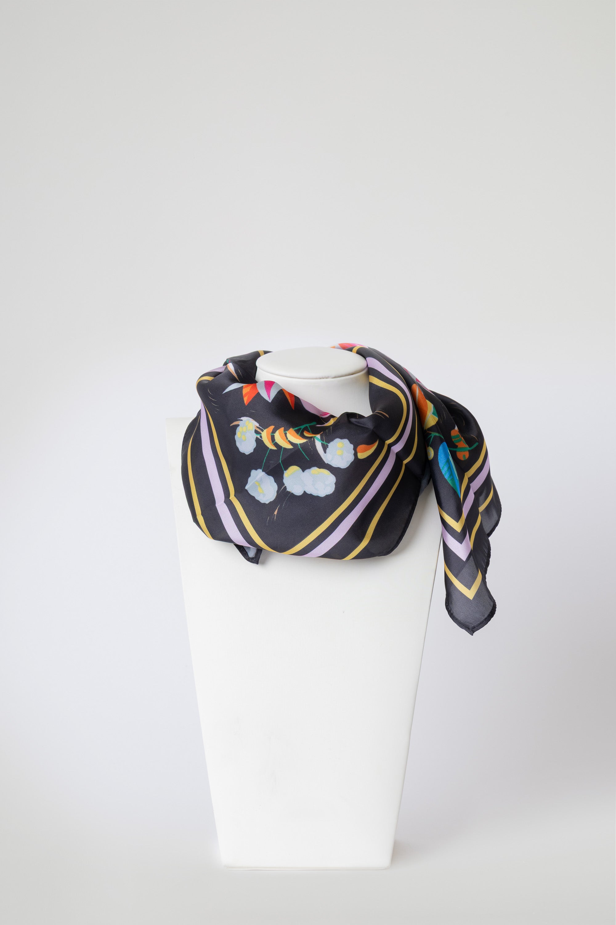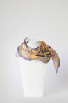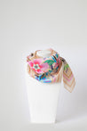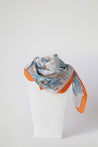 Foulard in morbida seta, impreziosito da raffinate stampe. Leggero, luminoso e piacevole al tatto, dona un tocco di eleganza e colore ad ogni look.