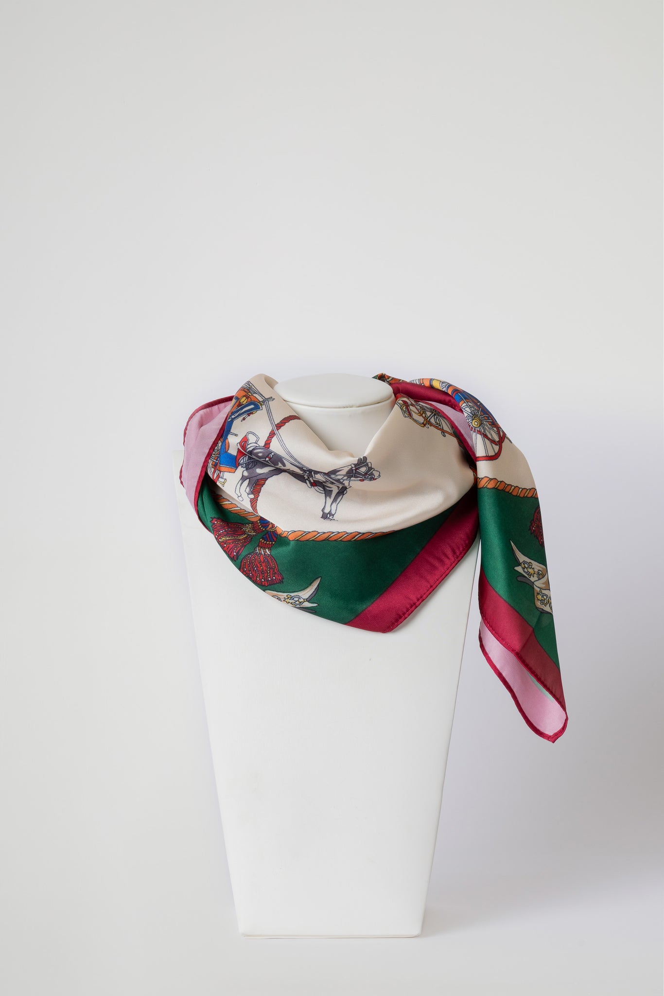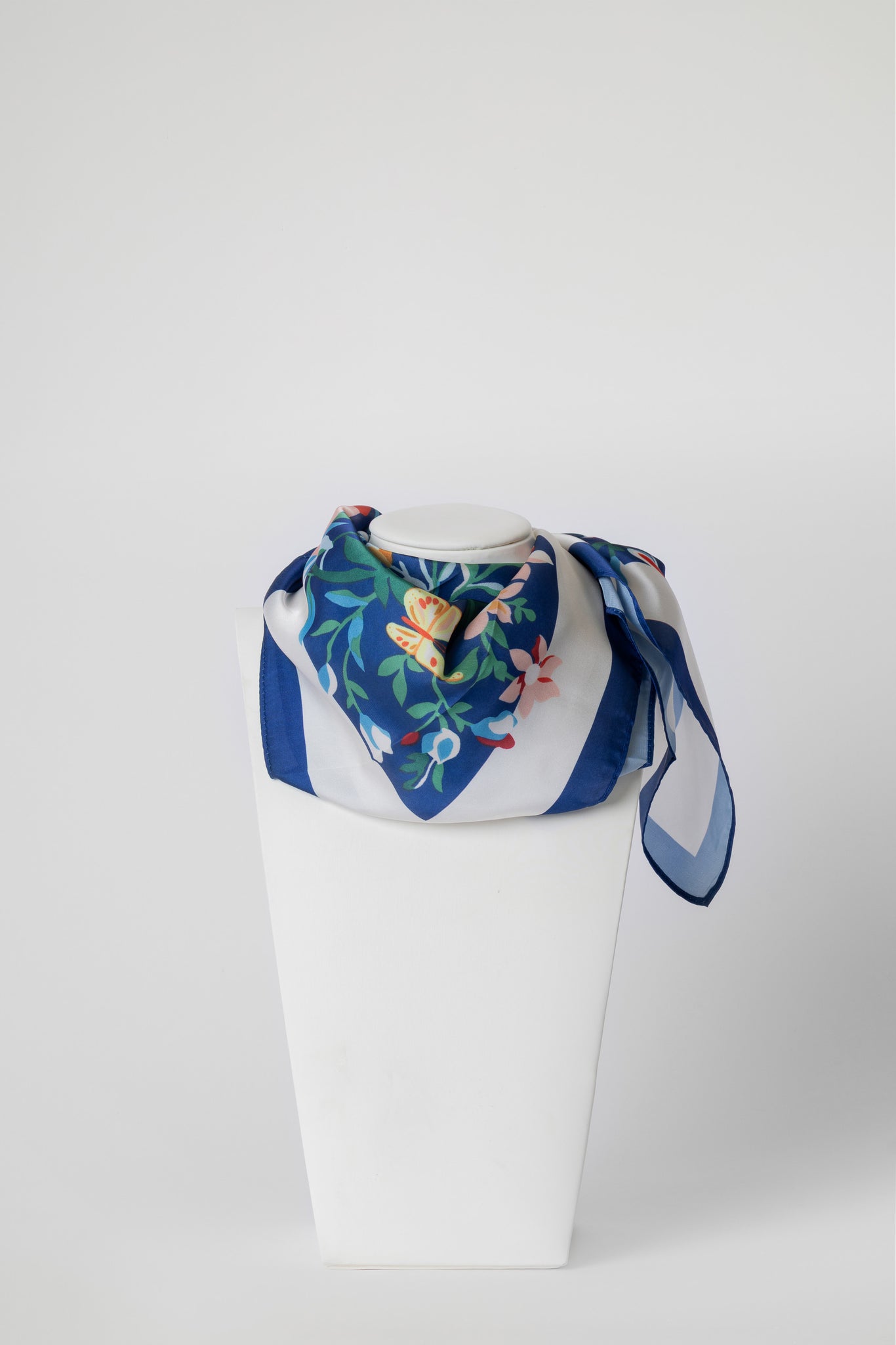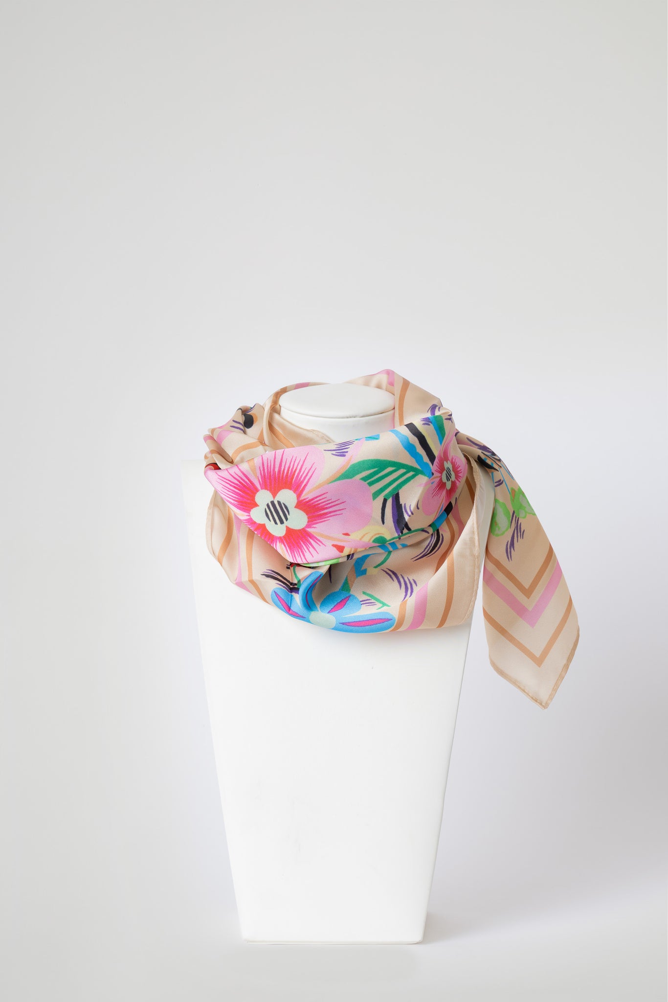 Foulard in morbida seta, impreziosito da raffinate stampe. Leggero, luminoso e piacevole al tatto, dona un tocco di eleganza e colore ad ogni look.