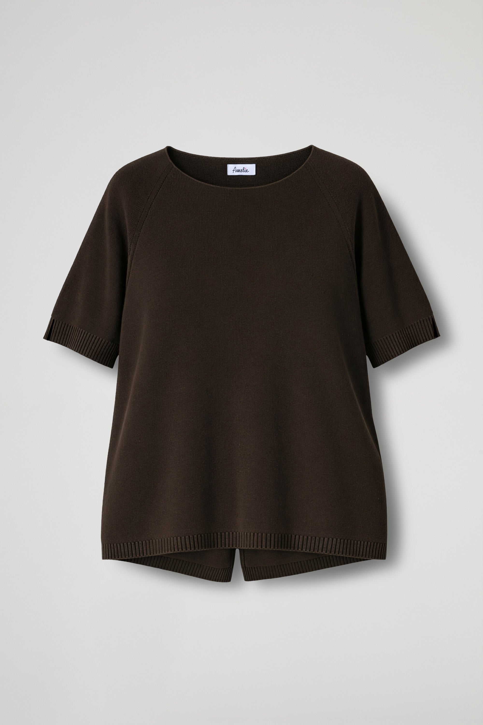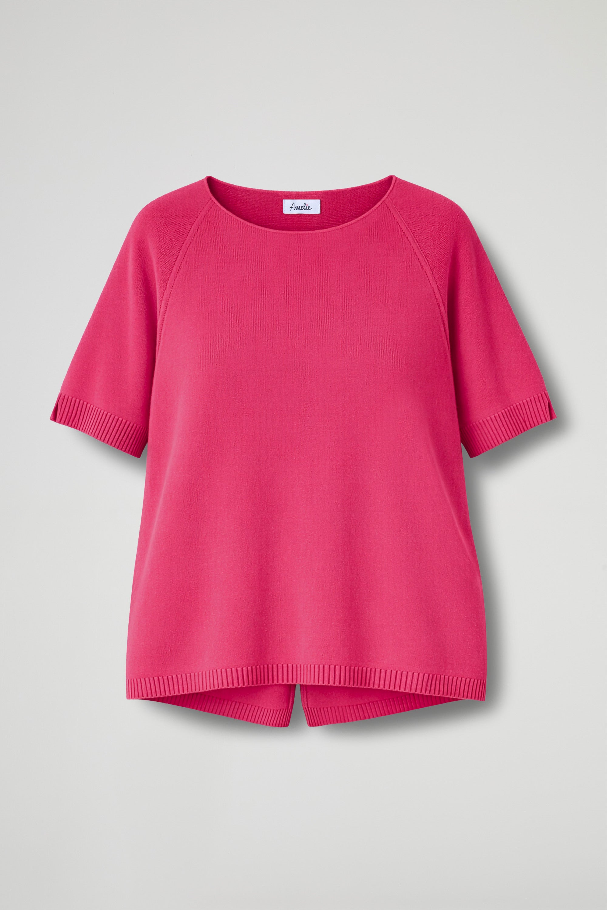 Maglia in morbida viscosa dal gusto essenziale e raffinato. Il filato leggero e piacevole sulla pelle avvolge con naturalezza, mentre il girocollo ampio e le maniche corte con taglio raglan donano una linea pulita e contemporanea. Rifinita con bordi a costine su fondo e maniche per un tocco curato e una vestibilità confortevole.