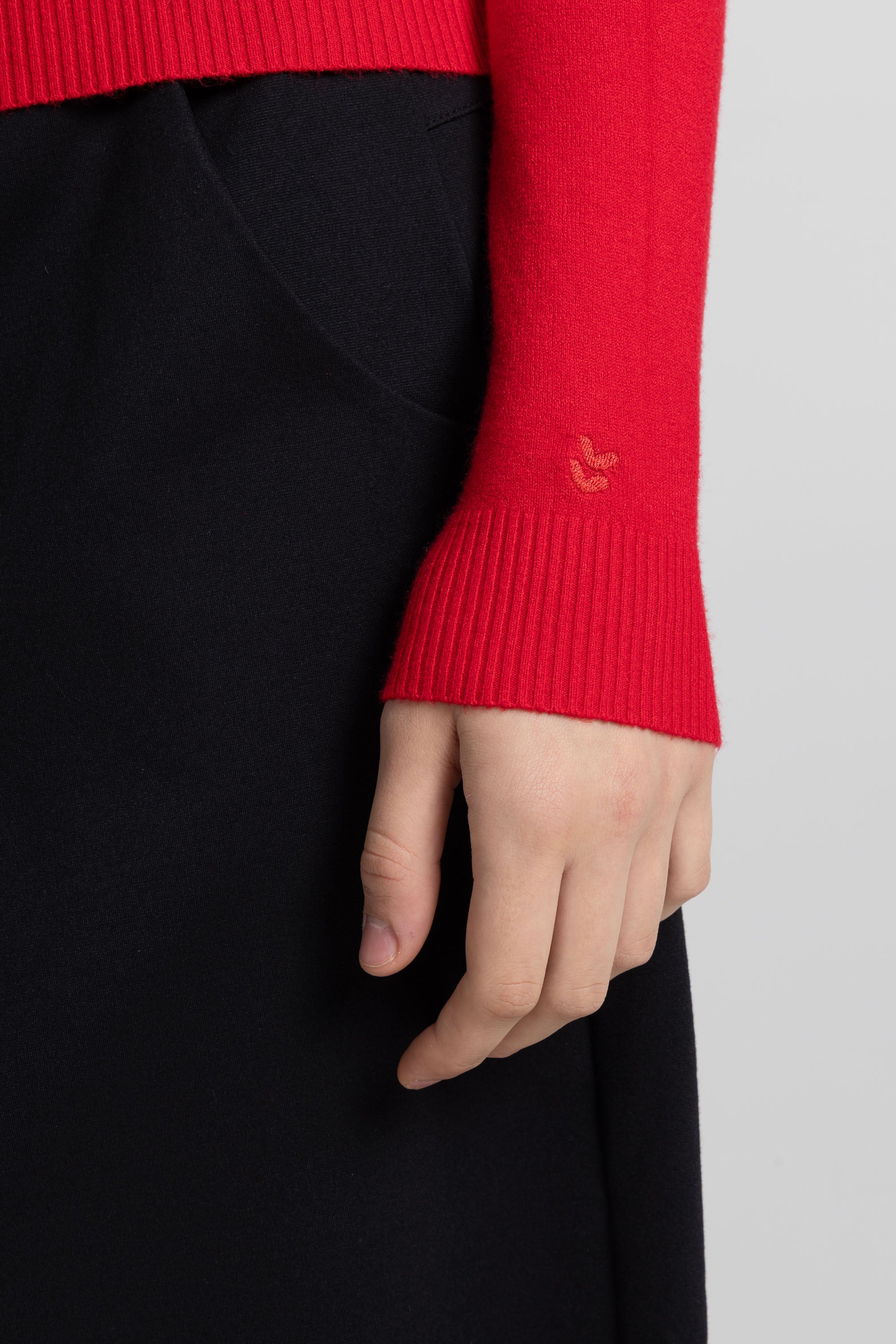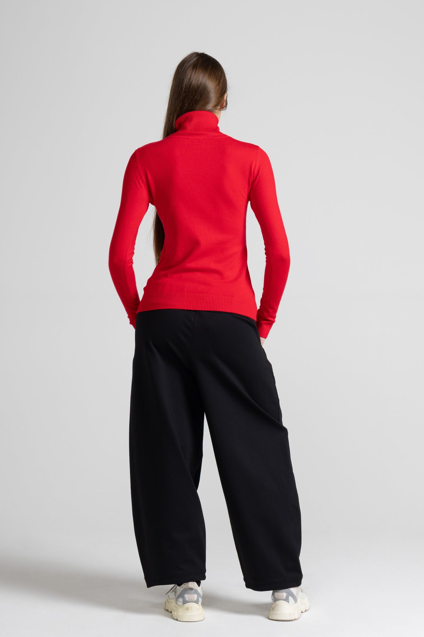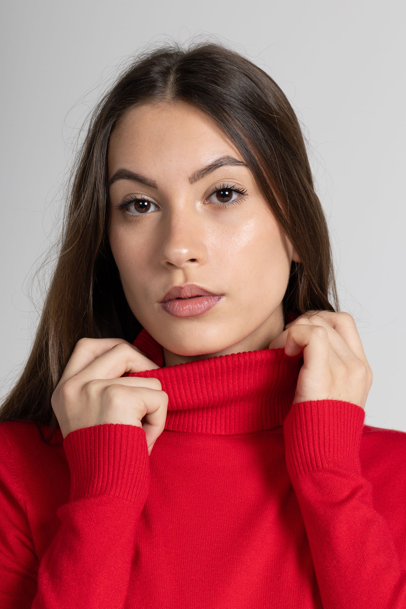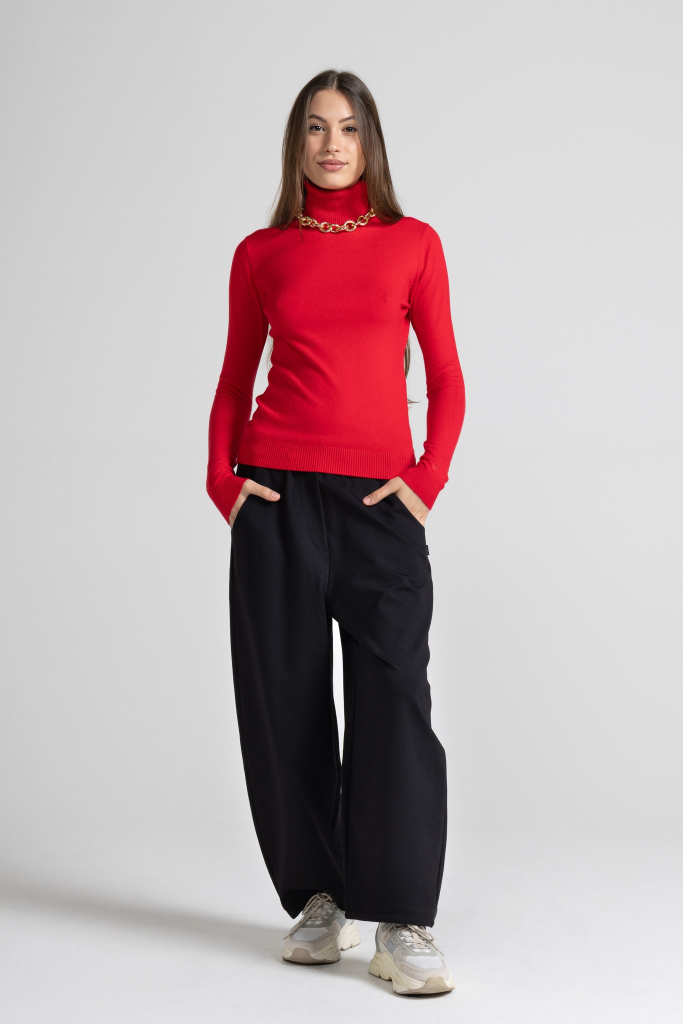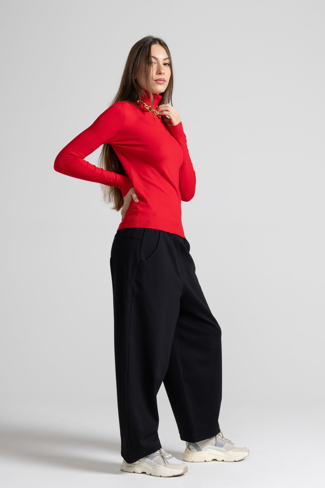 Maglia dolcevita, collo a costine elasticizzato, manica lunga con dettaglio polsino alto a costine, fondo a costine. Linea morbida