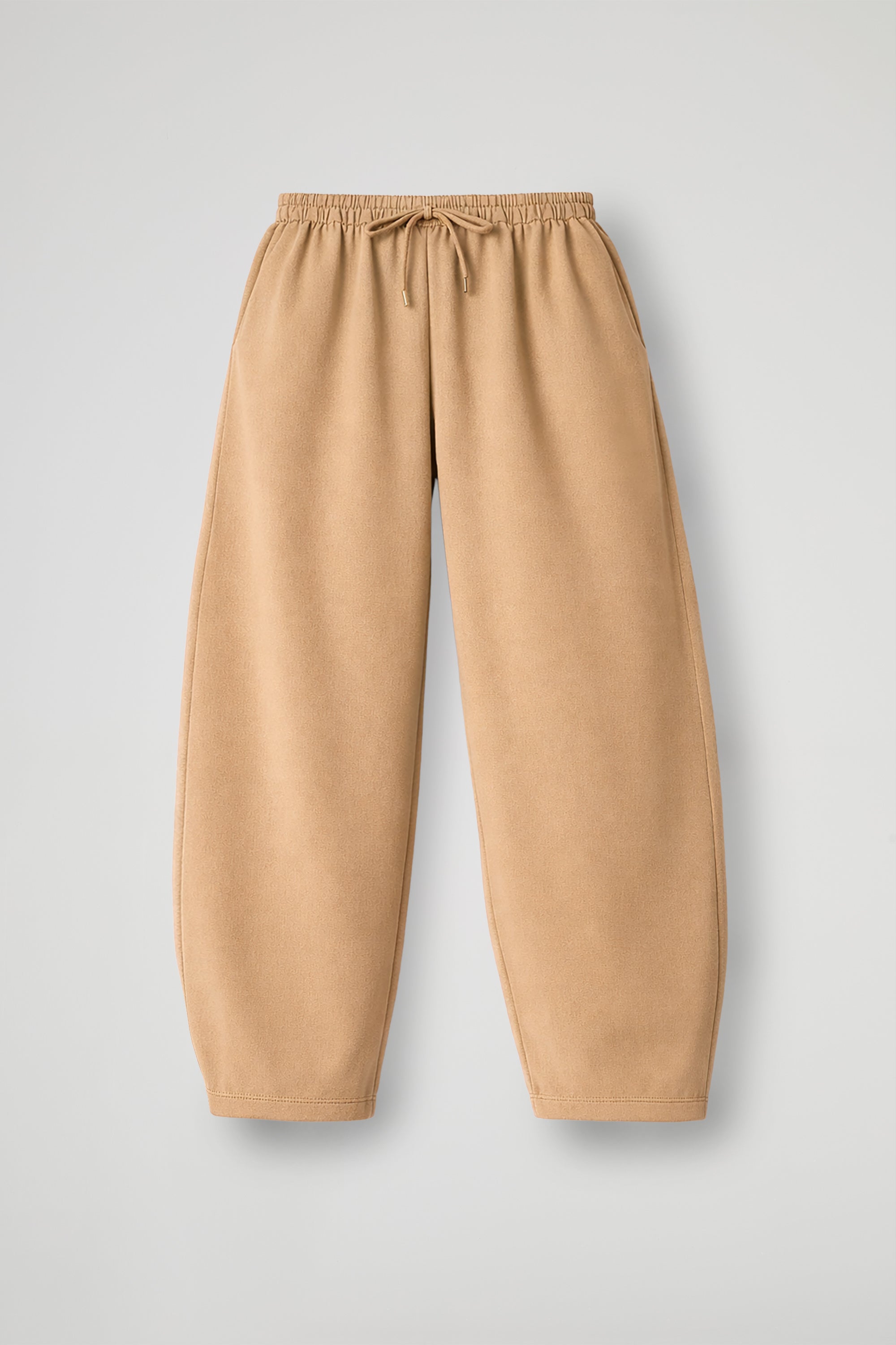 Pantalone jogger dal taglio comodo e rilassato, perfetto per look quotidiani easy-chic. La vita elasticizzata assicura comfort, mentre la coulisse con laccetto regolabile permette di adattare la vestibilità. Tasche a filo, gamba ampia che scende morbida e leggermente affusolata verso il fondo, con orlo rifinito a impuntura.