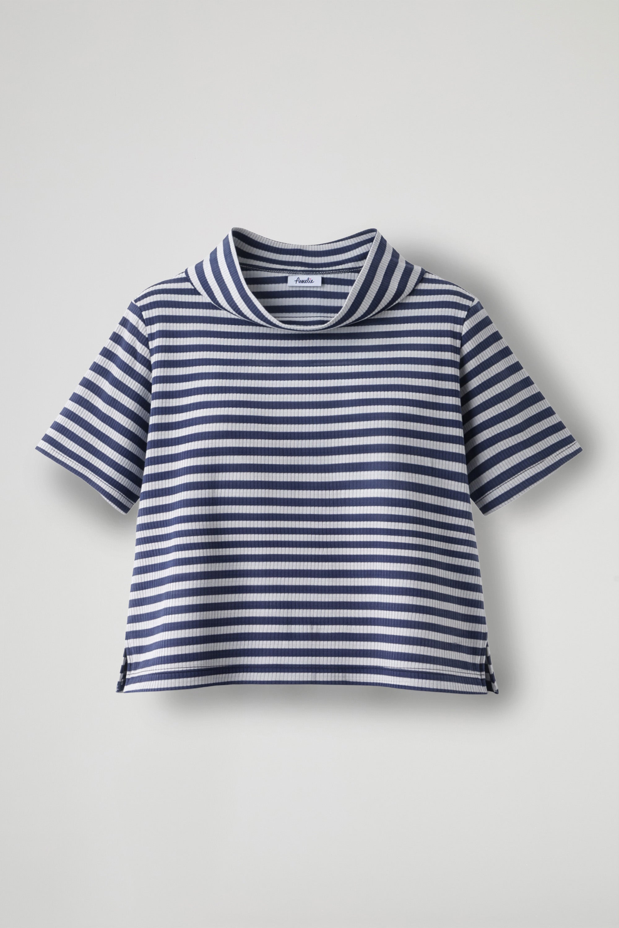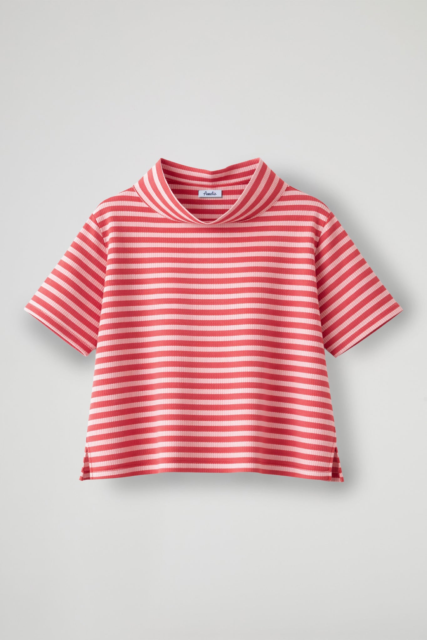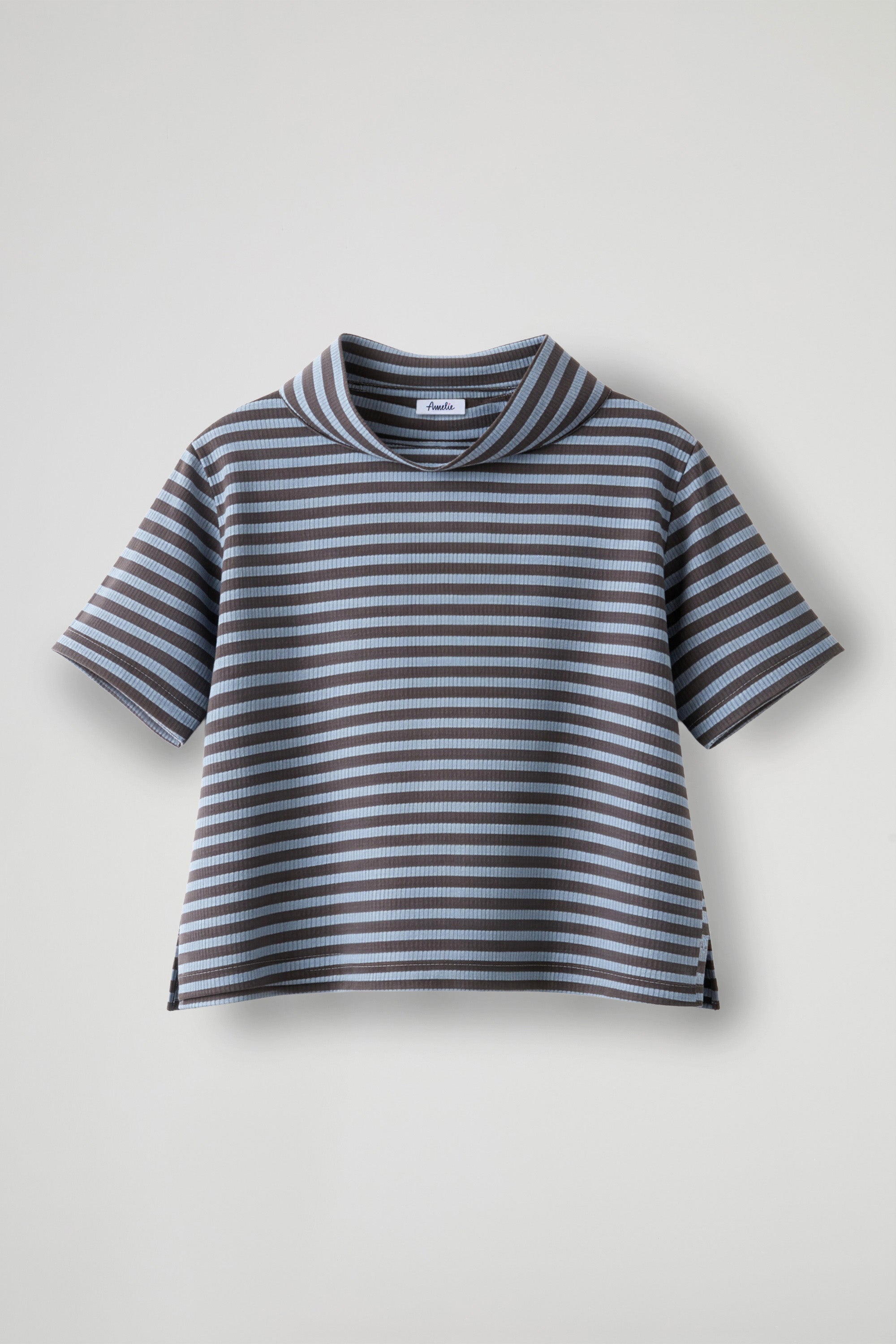 Top a righe dal gusto fresco e contemporaneo. Realizzato in tessuto morbido e confortevole, presenta maniche corte e un originale collo morbido leggermente ampio che dona movimento e carattere al capo. La linea è comoda e leggermente boxy, con piccoli spacchi laterali sul fondo per una maggiore libertà di movimento; Un capo casual e versatile, perfetto per completare look quotidiani con un tocco di stile.