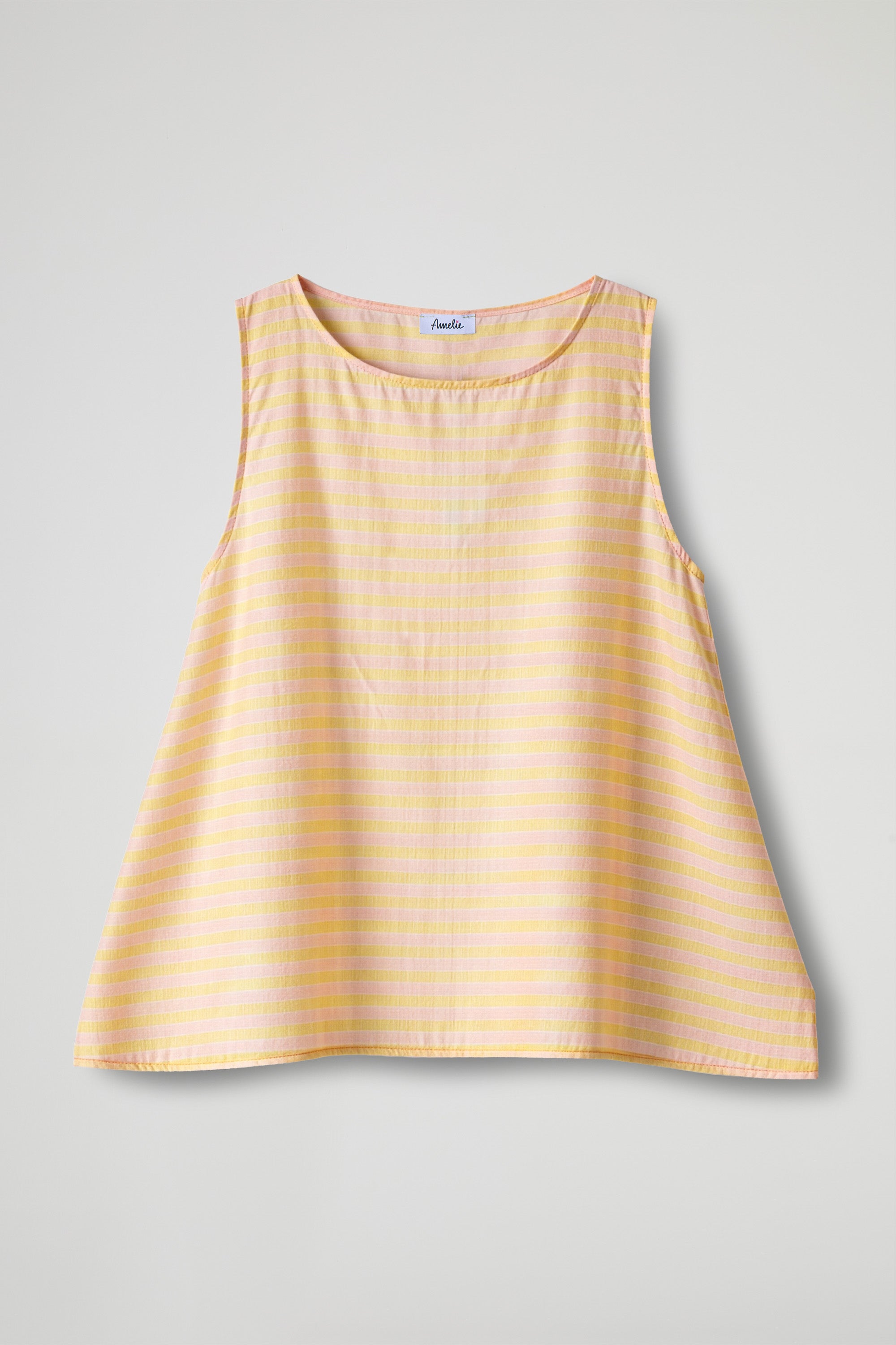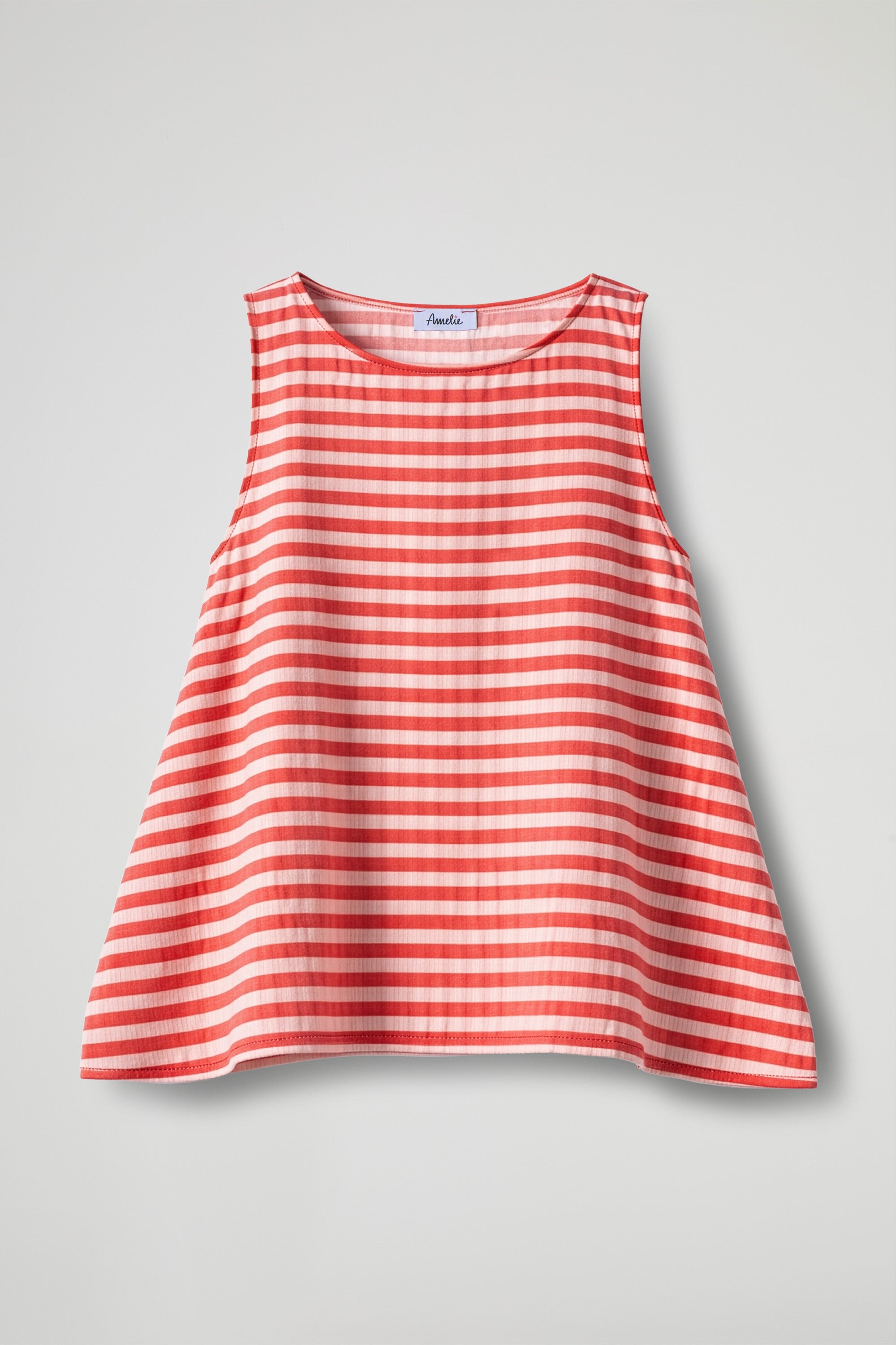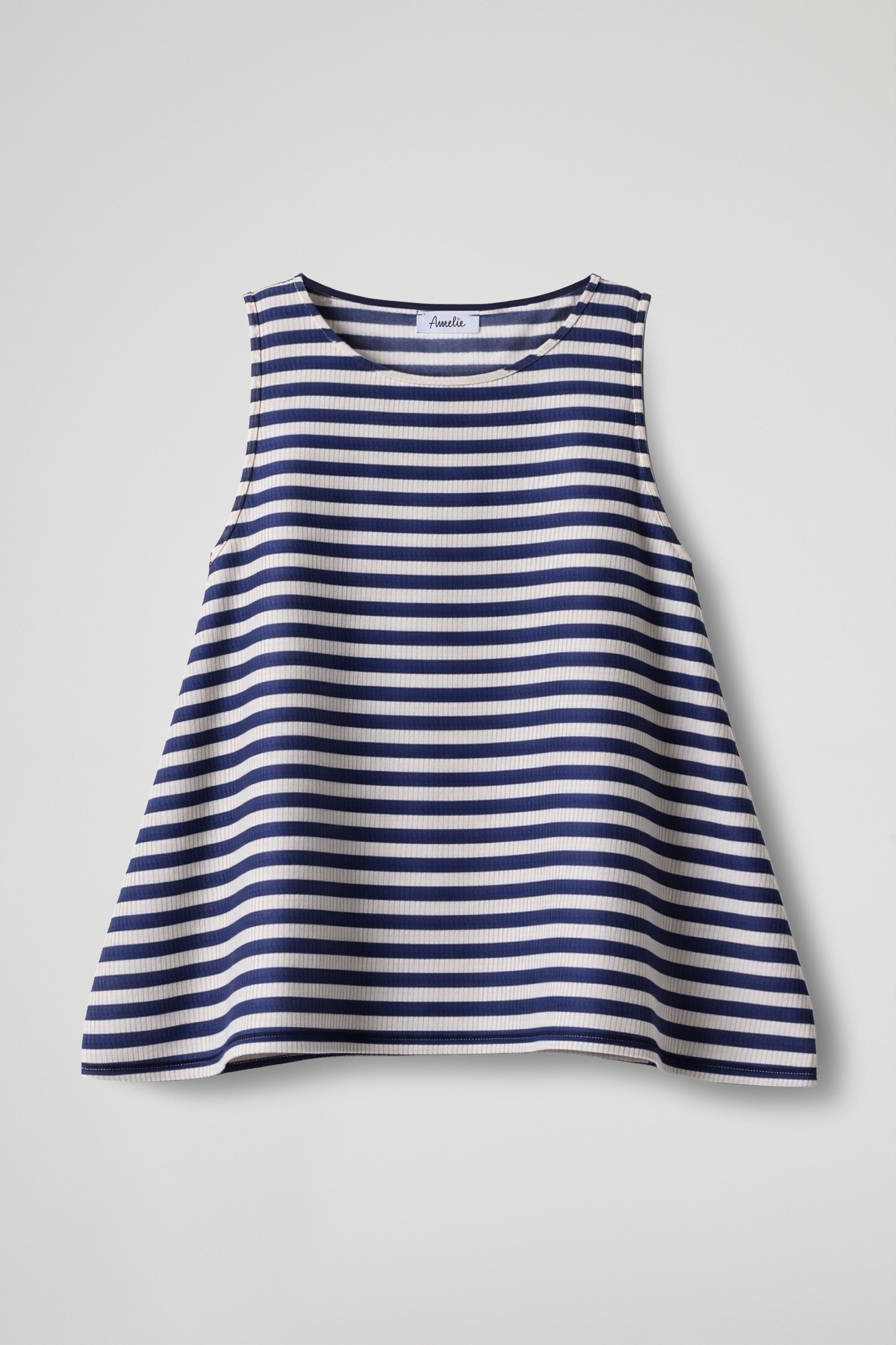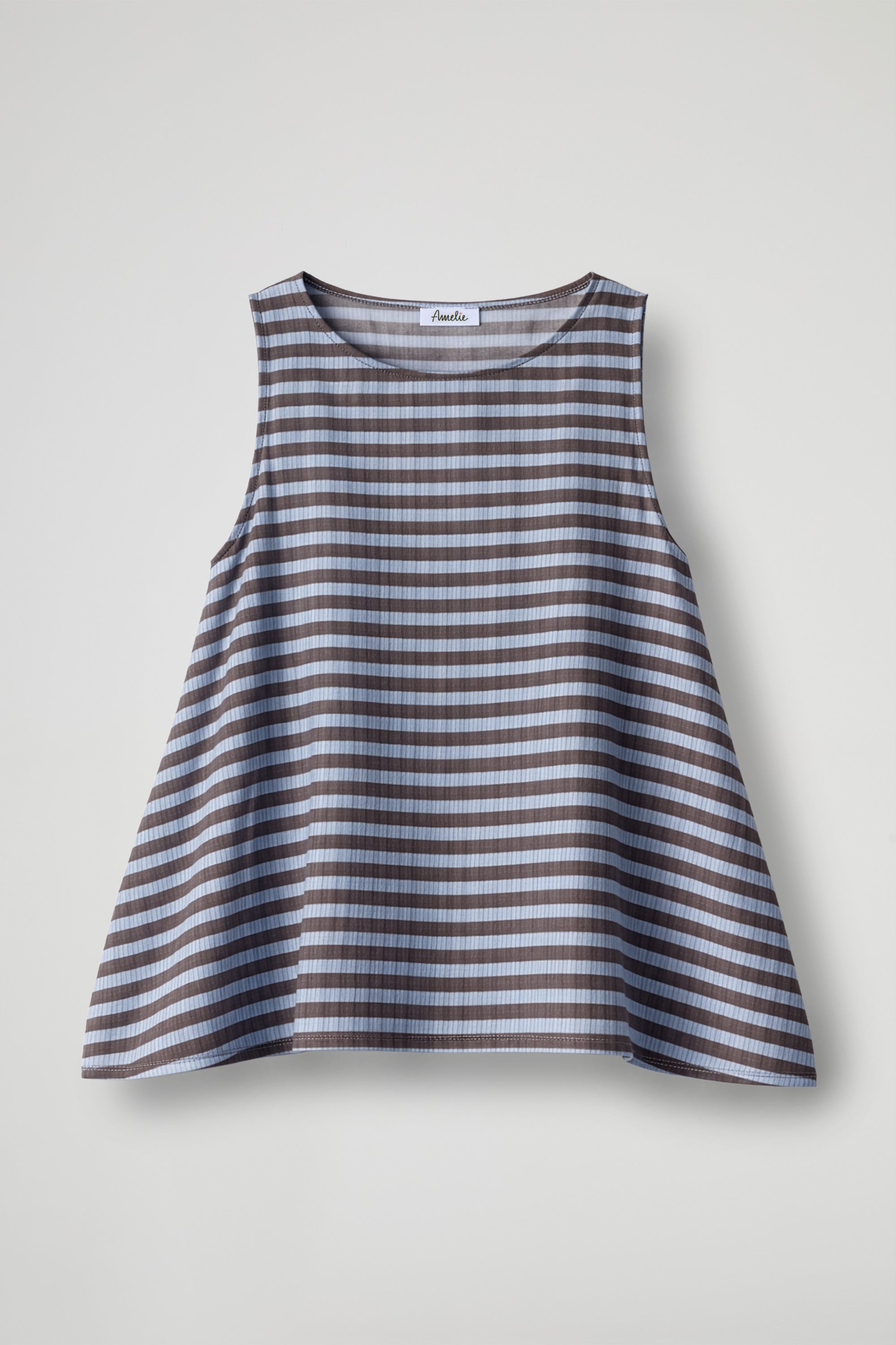 Canotta dal design essenziale e moderno, caratterizzata da delicate righe che creano un contrasto elegante e versatile. Il taglio svasato dona movimento al capo e garantisce una vestibilità comoda e fluida, ideale per le giornate più calde.